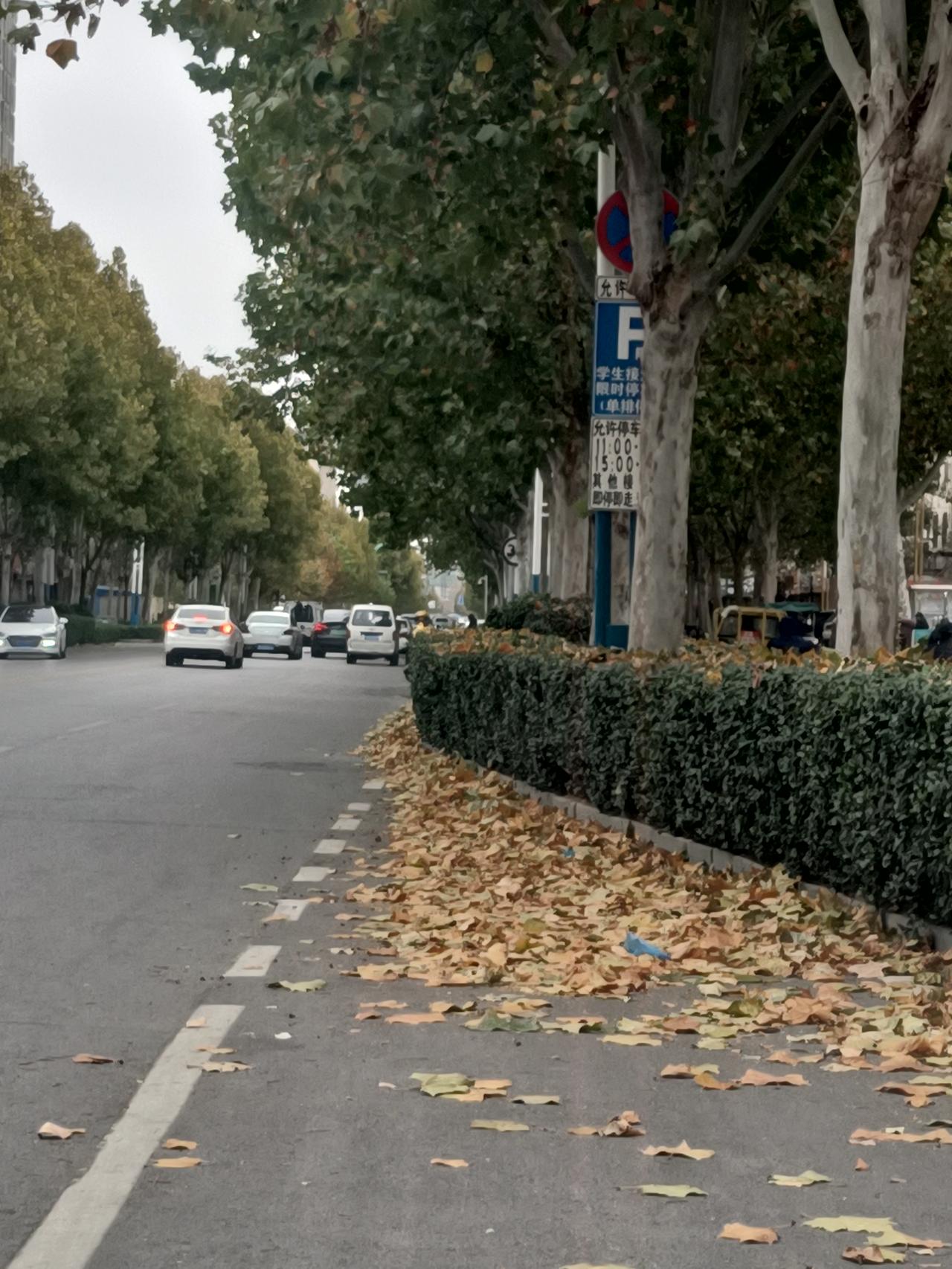 今天早上送孩子,天气真冷啊!小风呼呼的吹! 走在路上,风裹着梧桐叶往脖子里钻,冷得我一缩脖子。路边树底下早积了层黄叶子,脚踩上去“哗啦”响。连停车牌都裹在凉丝丝的空气里,车开过带起的风,都带着冬天那股清冽的劲儿这秋天还没回过神呢,冬天倒先踮着脚来了。 看着路上大人孩子都穿上了厚的羽绒服,感觉冬天真的太可!