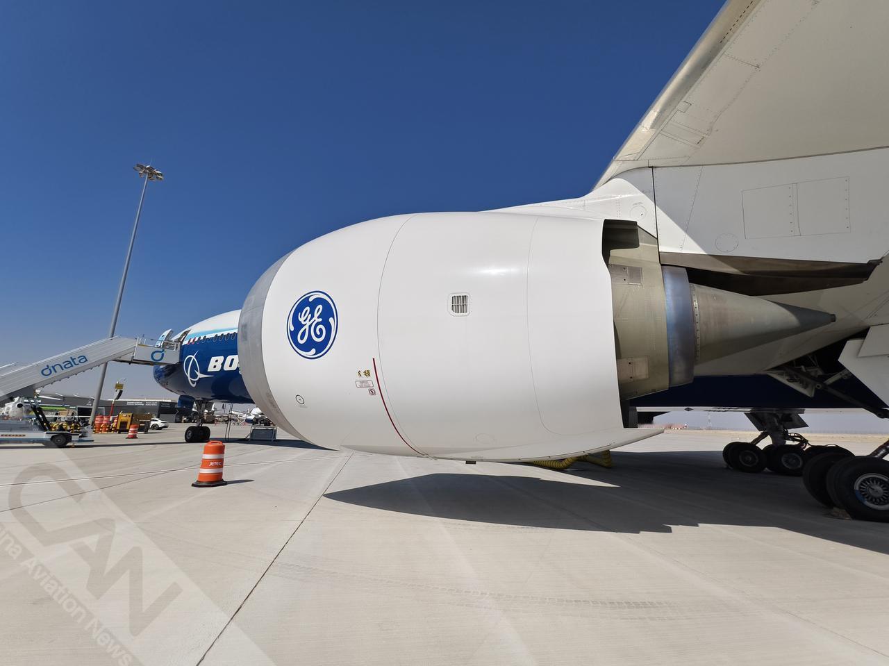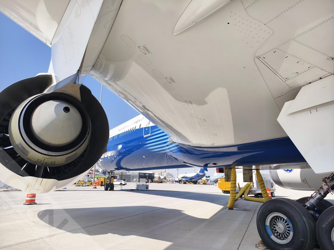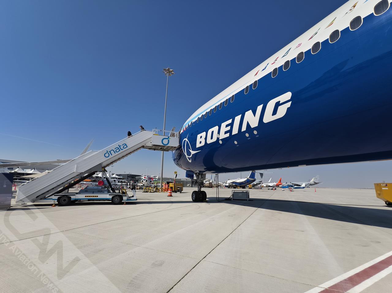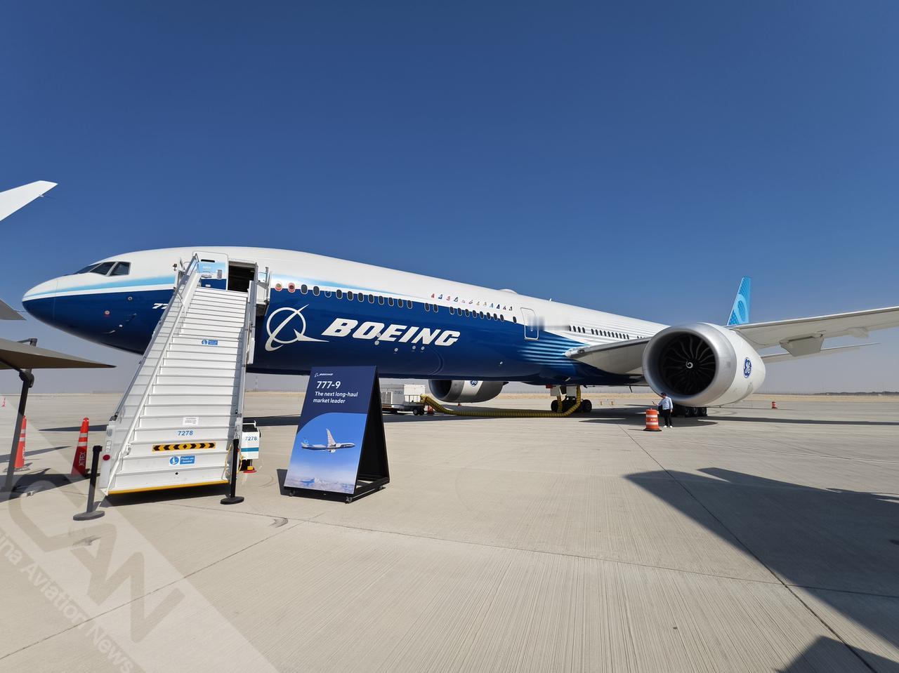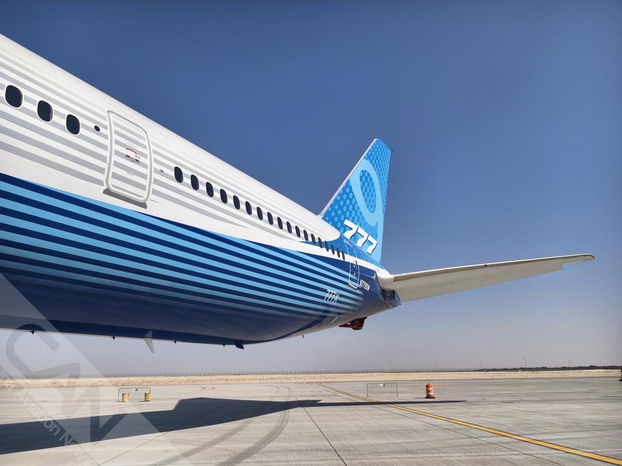 11月17日,2025年迪拜航展开幕,波音777-9亮相。一组图带你全方位看静态展示中的波音777-9。(摄影:吴紫磨)