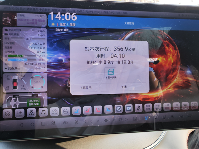 宋plus dmi 高速油耗表现 图一:满油满电开始出发(比亚迪车加满油会烧油,油表会掉一点点续航,电也是从国网快充的) 图二:到了目的地360公里,用了19.8升油电8.9度。剩余油39.6升电10.4 图三:到家剩余油量+电量+公里数 图四:在老家充满电 图五图六:满载车+4个成年人,一共跑了376公里。有28升电13.7度 用车情况:去老家全程一个人基本上下坡,空调未开智能保电50%,运动+hev定速巡航120。在高速上基本上是acc,扶稳方向盘就行非常轻松,出发地8-2°目的地20-6°。 回来的时候四个大人+满载+逆风+上坡,全程hev+运动+智能保电50%,遇到上坡基本上存不住电强制保电能存的下来电相对应的油会略微高一些。虽然会掉电也没有因为缺少电量而动力不足,高速acc定速120接着踩油门也是动力十足。就是亏电急加速发动机动静非常大,巡航120没任何感觉风噪+胎噪就盖过了发动机声音。 总体来说这次体验感觉非常不错,家里人也比较喜欢也没遇到失速+ev受限。个人感觉上高速之前还是充满电比较好一些,在高速上有电体验还是不错的,没有电就比较拉跨不知道比亚迪1.5t发动机高速上是这么样子的。 我用的迪粉桌面软件,高速120满电发动机转速2900,电机转速1w1百左右。亏电发动机转速2950左右,电机1万左右没啥区别。这里的亏电是指45%-30%电量。