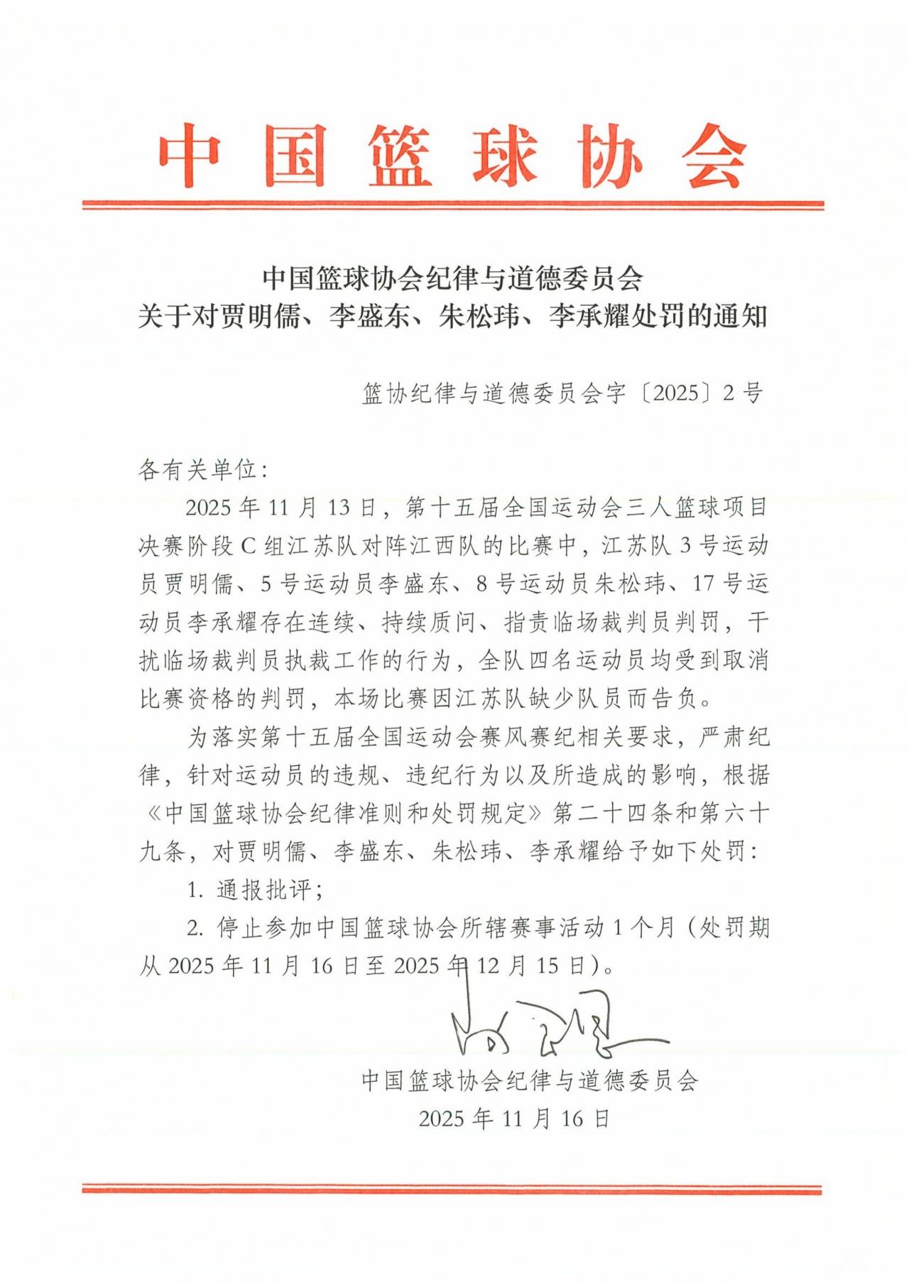 朱松伟贾明儒被禁赛一个月,只影响CBA几场球,真的没必要和赵睿乱比较 朱松玮们被禁赛,甚至影响打CBA,我之前写文章就预言到,主要是因为篮协就习惯了这样的追罚方式,其实纠纷就怪朱松玮,吹罚犯规后连续多嘴,直接被罚下,后续三个球员也是不依不饶,最终就是双输的局面,其实都在赌“谁是二杆子”,裁判是依法吹罚,球员是赌裁判有没有胆略,最终得到什么呢? 很多自媒体骂裁判,事实上对人家影响不大,甚至还留下果敢的好名声,起码比很怂的裁判好些吧?CBA的闫军,就靠胆大立足的吧?没必要跟赵睿比较,赵睿禁赛五场球,还被罚款10万,这几个都没有,假如先牵连到CBA的,肯定是外行才胡搅蛮缠,至于禁赛一个月,其实对吉伦沃特也是这样,这是依规追罚,没有考虑到没有比赛,就法外开恩的说法。 篮协给裁判撑腰不奇怪,球员和球迷的侥幸心理要不得,有必要跟裁判赌大小吗?这不是挑衅篮协吗?吃饭砸锅要不得。