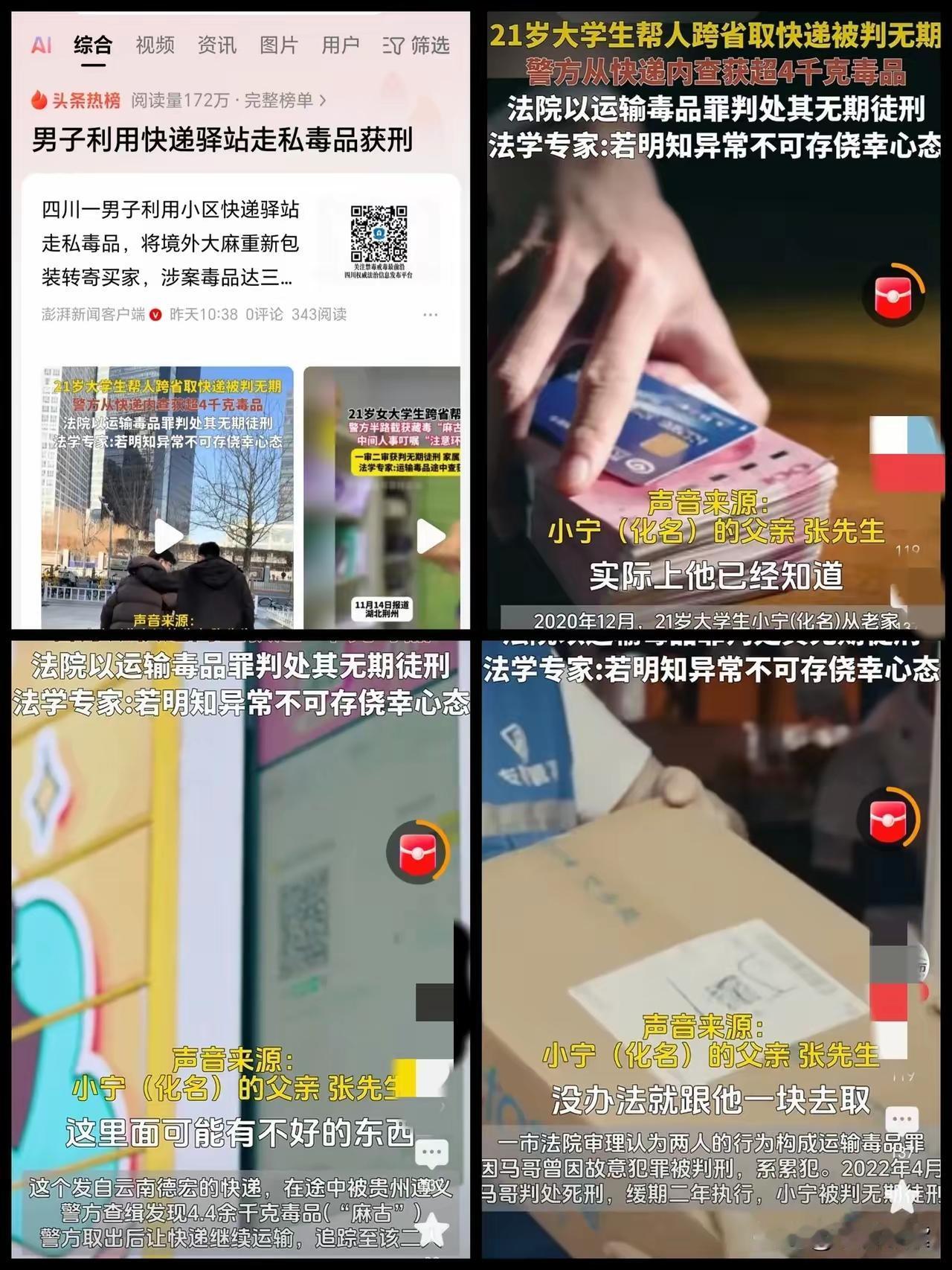 这位21岁的大学生张某宁可能是真的肠子都悔青了吧, 没想到自己的一时“贪欲”,会把大好前程葬送,还把自己的余生全部送进了监狱! 为了一万块的“好处费”,在怀疑有问题的情况下,还继续帮取快递,最终葬送了自己的一切,真的是一手好牌打成稀碎! 有网友说:要是一口咬定,就是不知道里面是啥,帮人取个东西,会怎么判 关键在于他是不是知晓是毒品。这点才是法律鉴定他行为的动机。如果一万就说他知晓,钱不能作为论证 记住,任何报酬跟你所做的是不成正比的!比如给你1万,那说明这个事起码不止10万。价钱越高,体量越大。 之前有朋友说要我帮忙收两万块钱,顺便把欠我的钱一起还了,我没答应她欠我钱也没有还 拿个快递,给一万,叫你搞个不相关的干嘛,再注意周围的人。只要是个成年人,就清楚肯定有问题。 大家怎么看呢?
