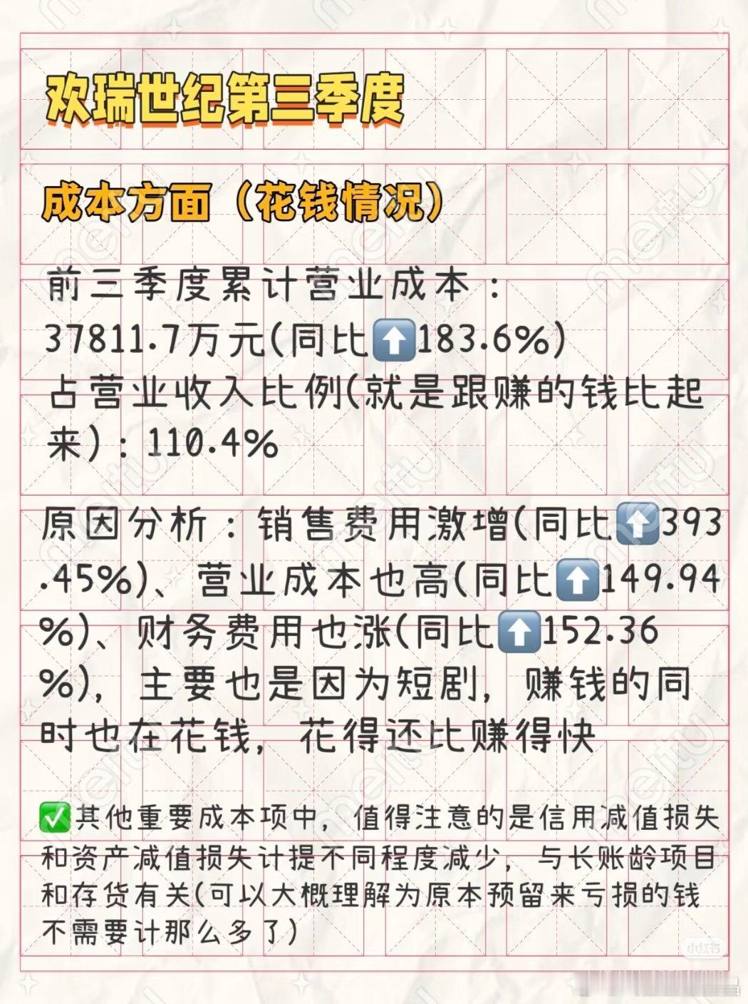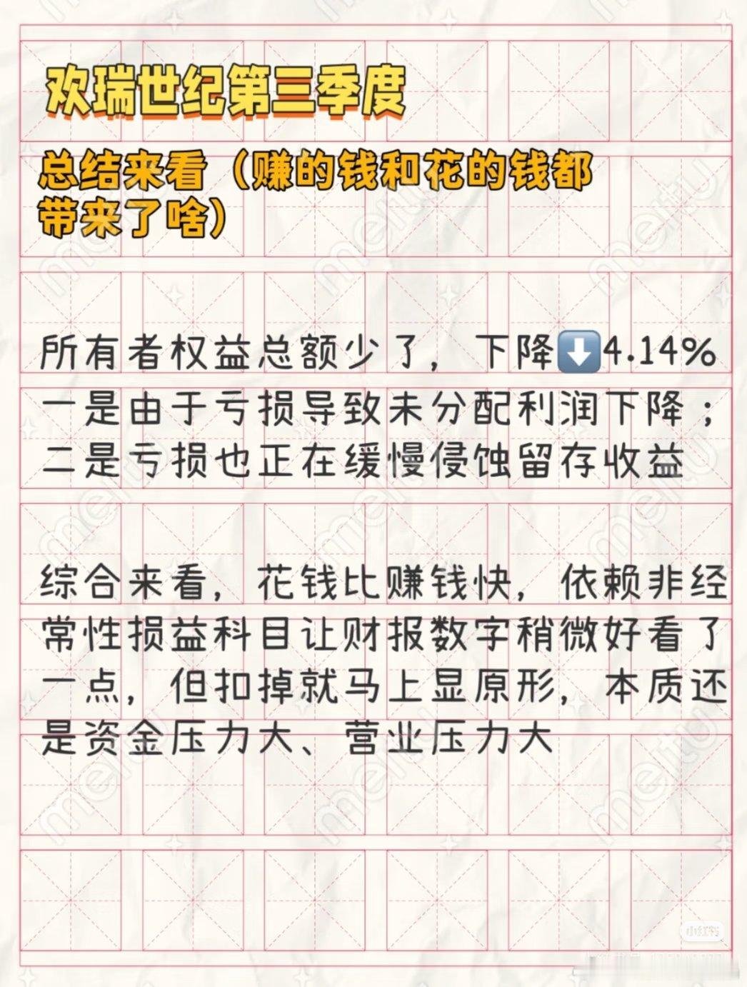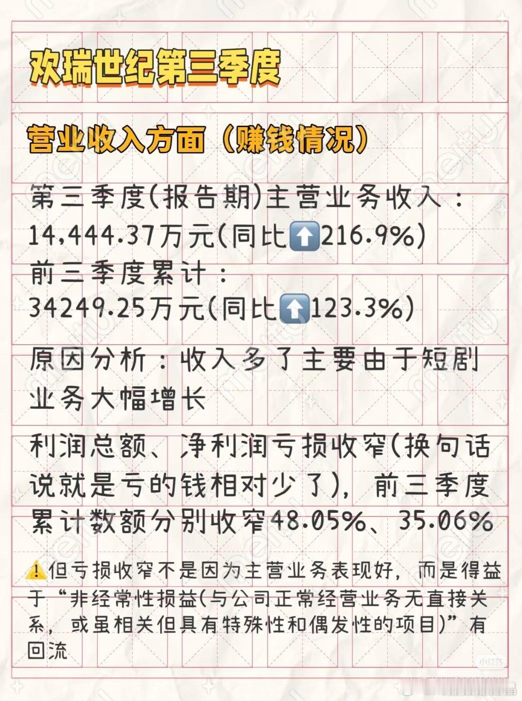 欢瑞2025Q3财报,赚的比花的多,主要靠短剧赚钱,营销费太高,同比激增393.45%,亏损收窄是因为得经常性损益项目,亏损也在侵蚀留存收益。