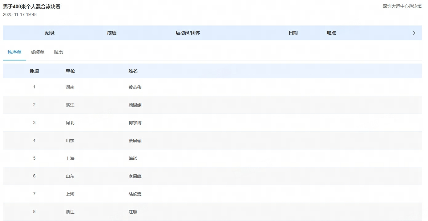 汪顺可以参加晚上的400混决赛了!在今早进行的400混预赛中,汪顺4:25.57位列第9无缘决赛,浙江队赵梁州4:24.82位列第7。赵梁州弃权,汪顺递补晋级!