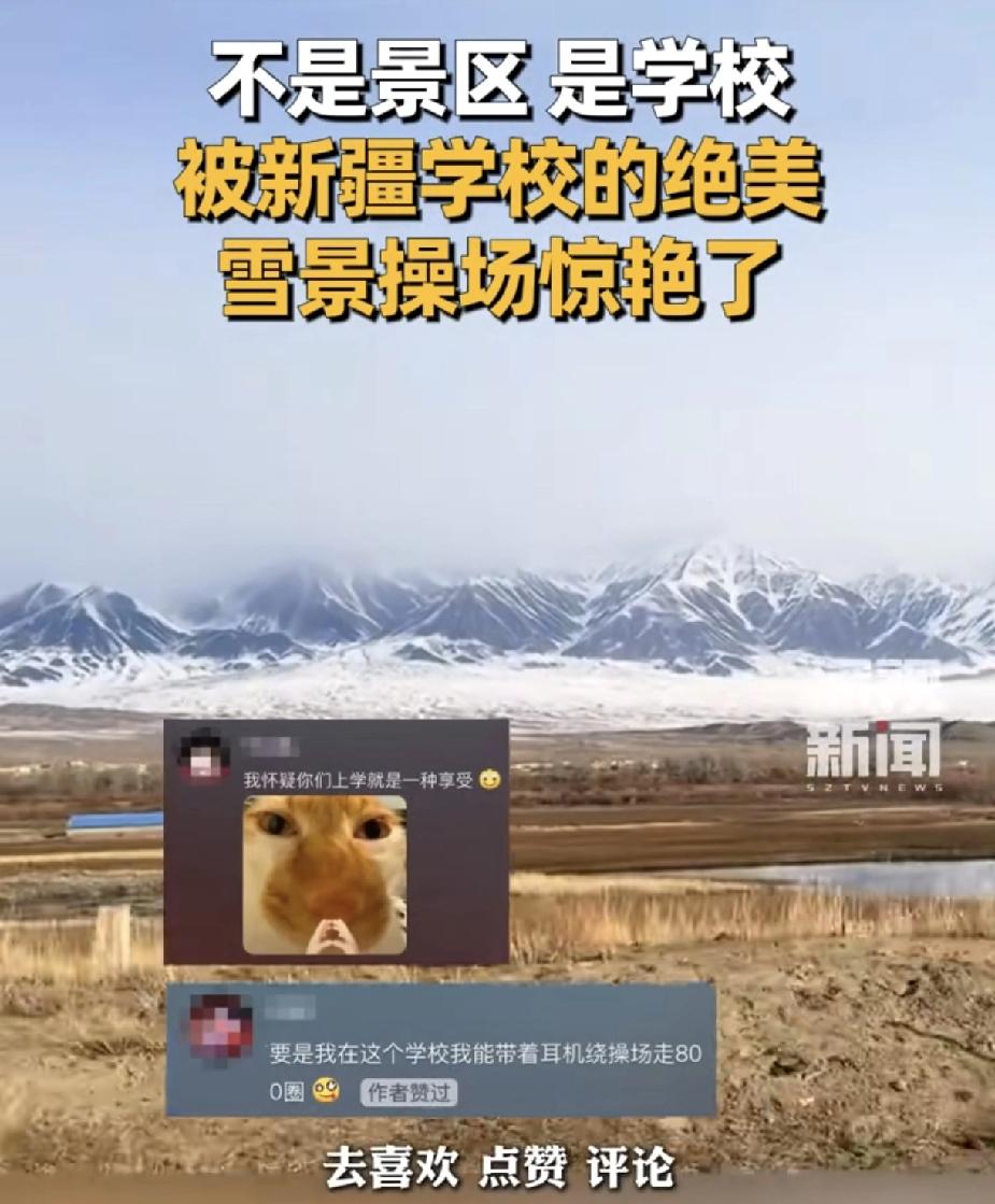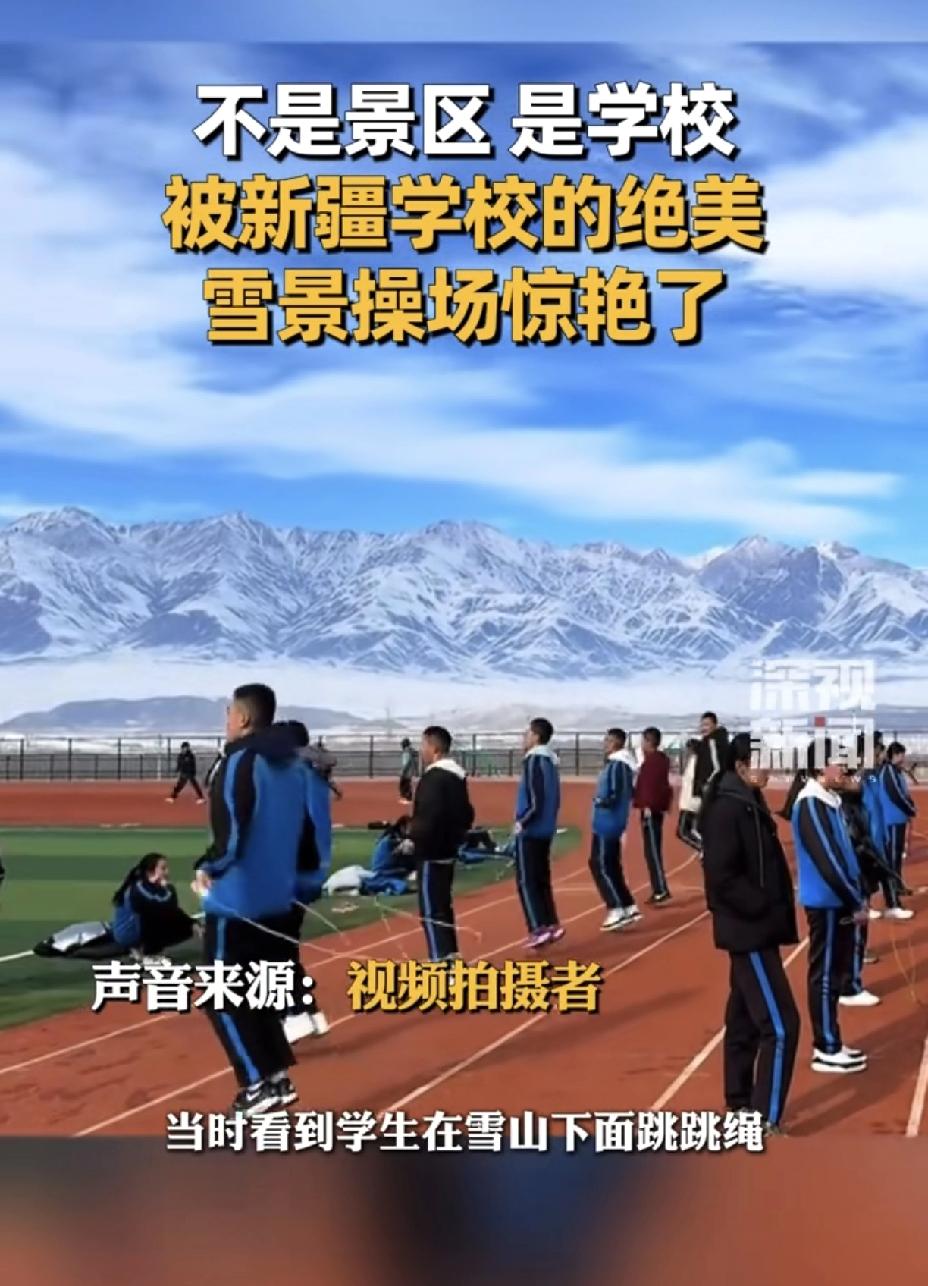 抬头就是雪山,新疆网友晒学校绝美操场,网友:我能绕这走800圈 这哪是上学的操场,分明是把课堂搬进了大自然的画卷里!新疆温泉县这些学校藏在半山之间,1600多米的海拔让雪山成了天然背景板,连早读都能撞见日照金山的盛景。 别只羡慕风景绝,这背后是最生动的美育课。学生们在雪山下跑操、跳绳,眼里看的是连绵雪峰,心里藏的是对家乡的热爱,这种沉浸式的自然教育,比课本里的文字更有力量。 网友说想绕着走800圈,说到底是羡慕这份“身在景中不知景”的幸福。那些我们花几千块路费追寻的美景,却是新疆学子日常的校园风光,这也是独属于边疆的浪漫。 美景从来不是偶然,是祖国边疆发展的见证,更是自然与教育最和谐的共生。你羡慕这样的雪山操场吗?如果你的学校有绝美风景,来评论区晒一晒~