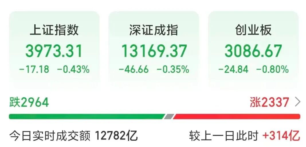 截至上午收盘,上证指数下跌0.43%,深证成指下跌0.35%,创业板指下跌0.8%。市场半日成交额超1.27万亿元。