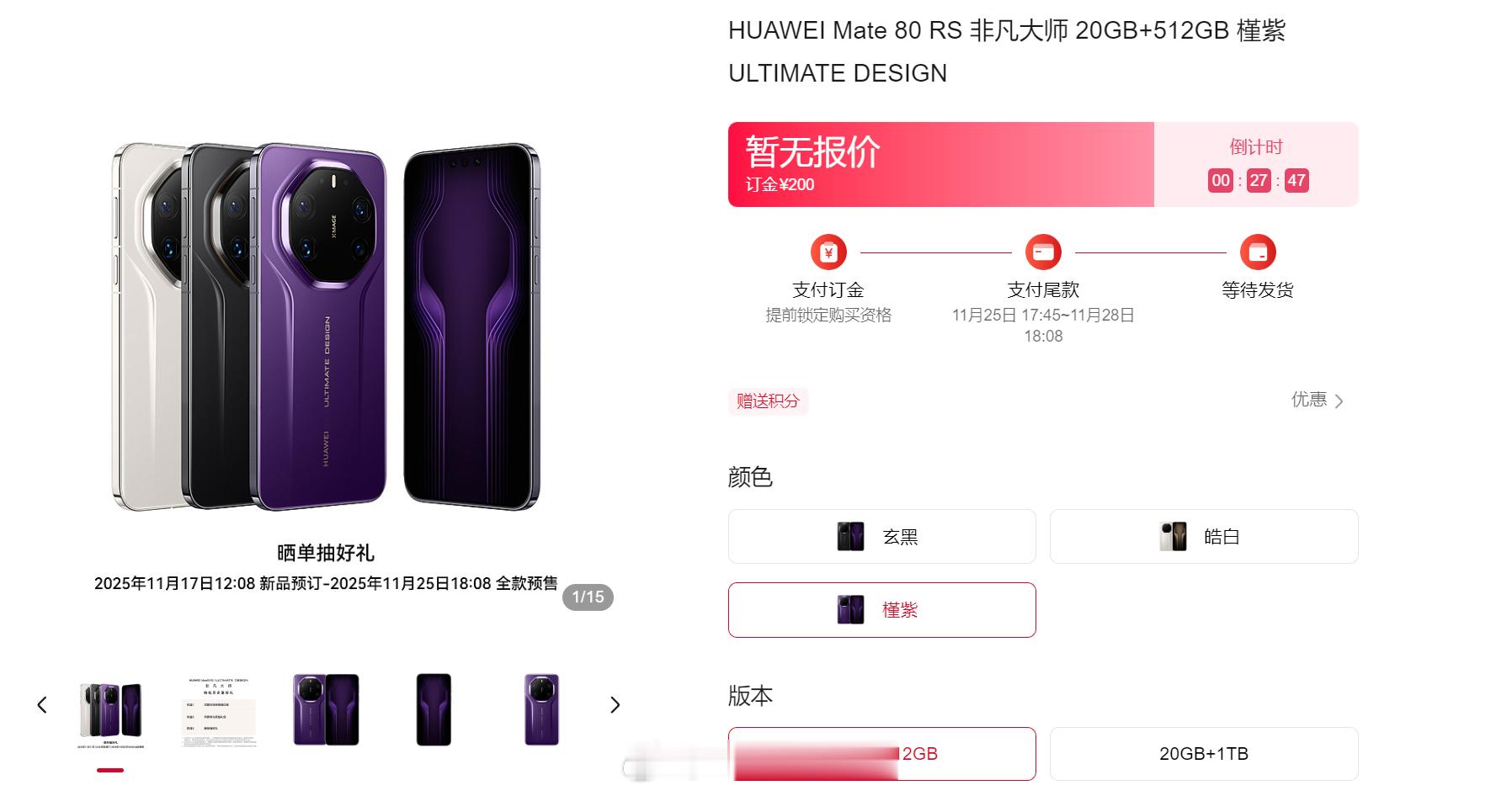 中午的时候还可以预定到标准版,现在连定都不能定。 手快付了200块钱定金。