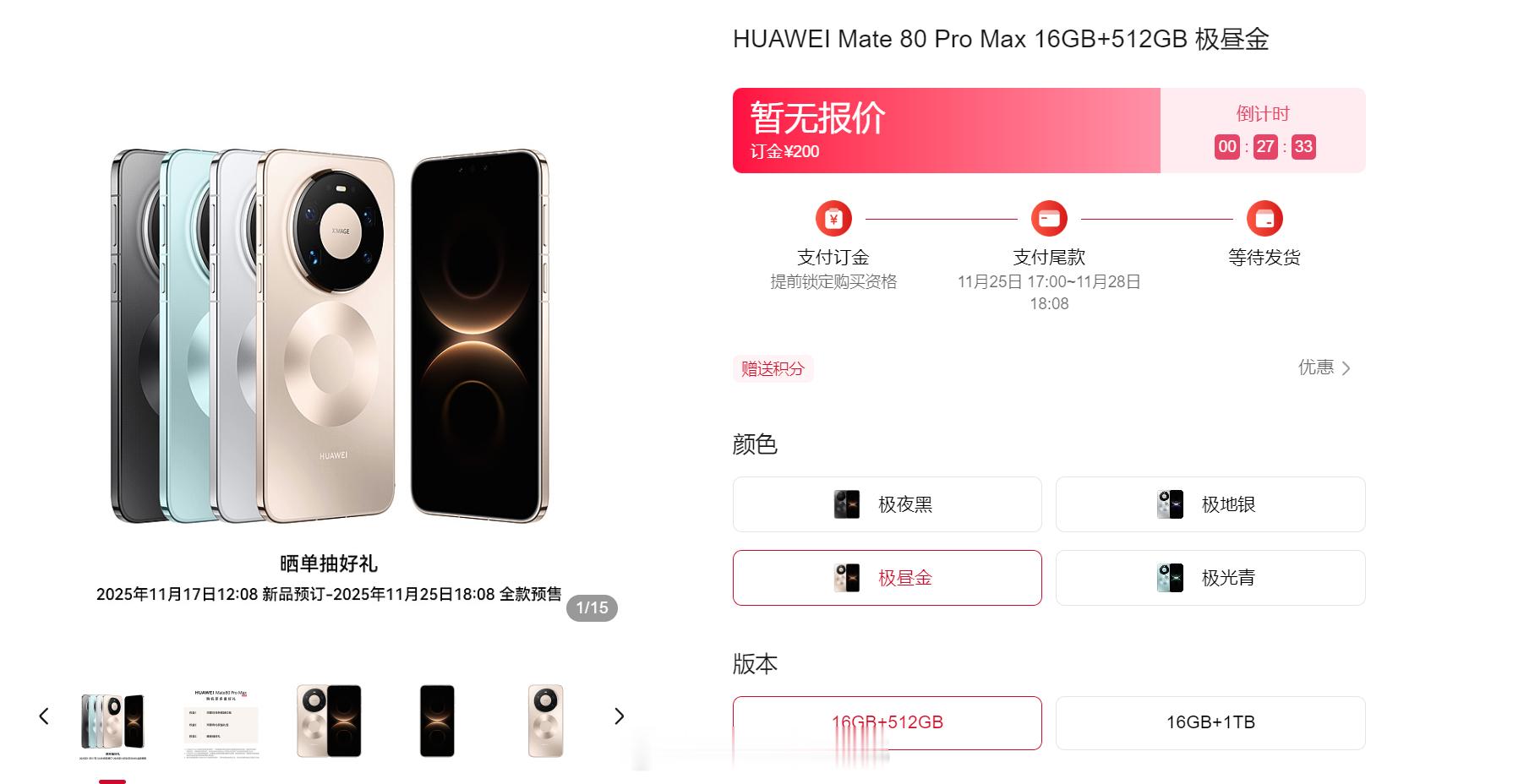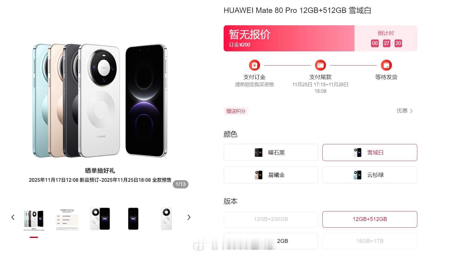 华为Mate80全系开启预定,外观和配色都放出来了,四个版本:Mate80