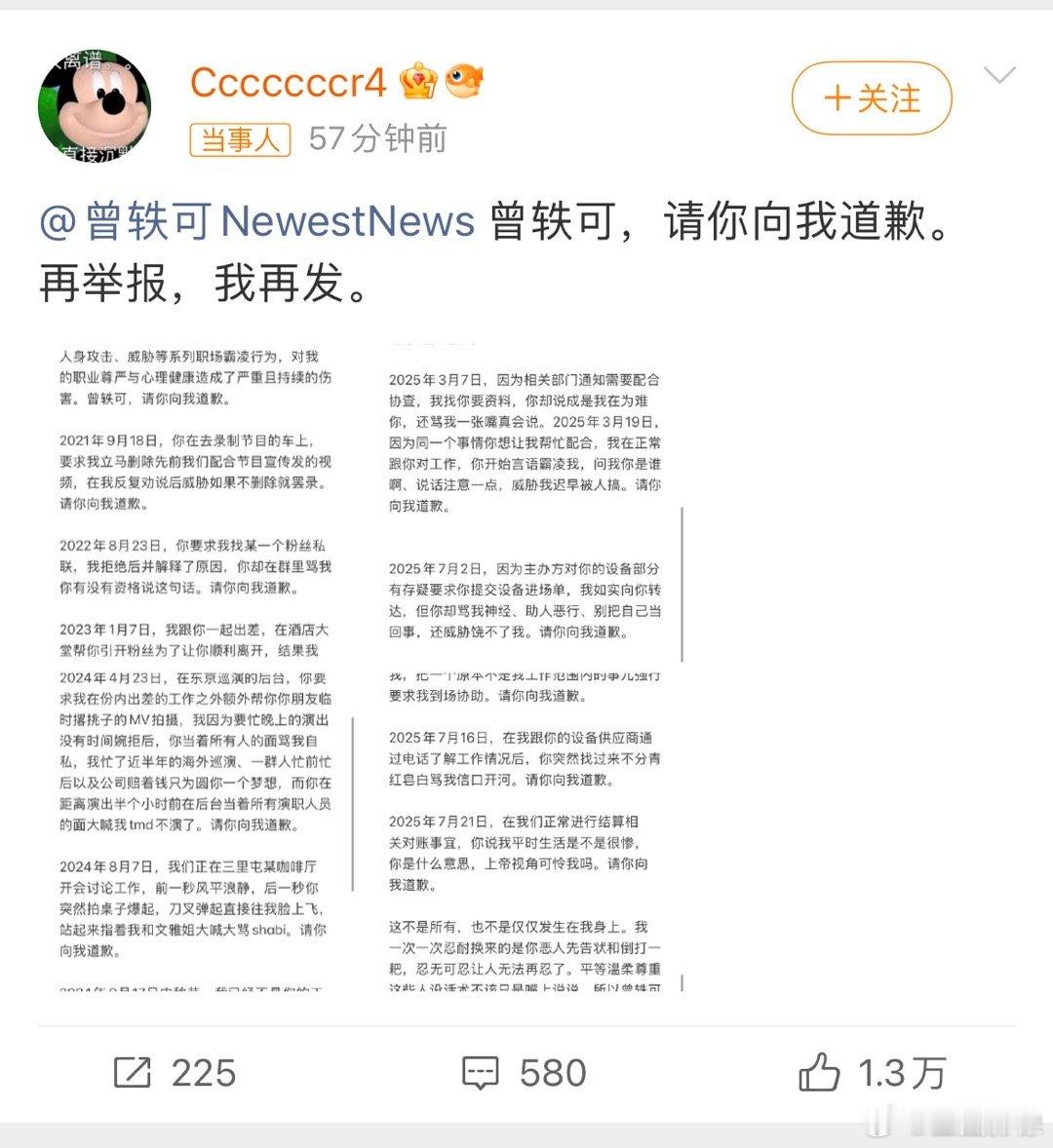 这我可太熟悉了!前阵子一个杭州媒体发了曾轶可演唱会票房不行可能要取消,我呢就随手搬运了一下,她工作室立马来恐吓了,说实话我也不是怕她,我就觉得很恶心。就是越糊越爱捂嘴,糊穿地心了她也不敢去找人家媒体,就在网上找我们这种小博主来示威,这不就来了吗?被前员工控诉,好家伙前员工这苦水吐的,打工人真不容易啊