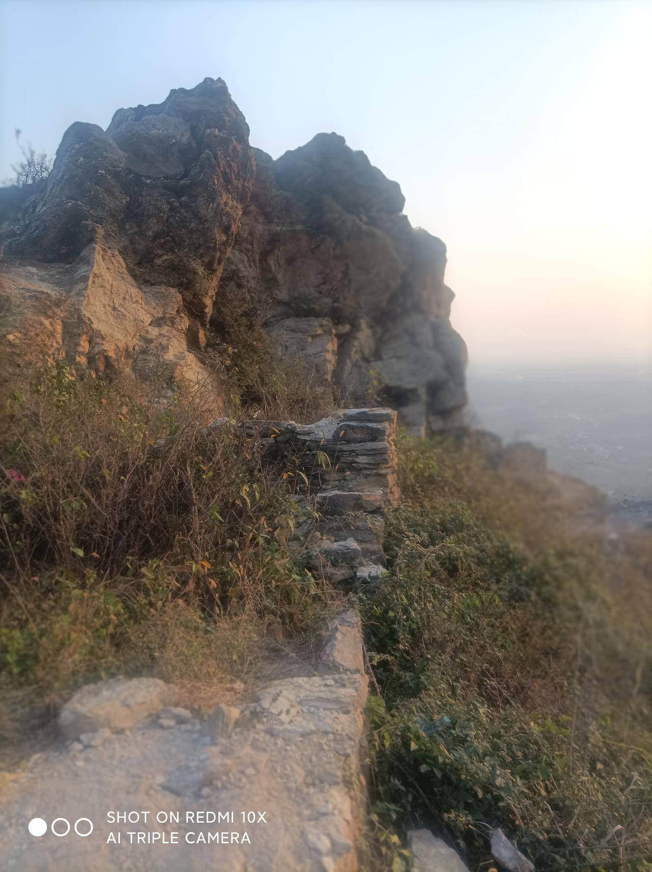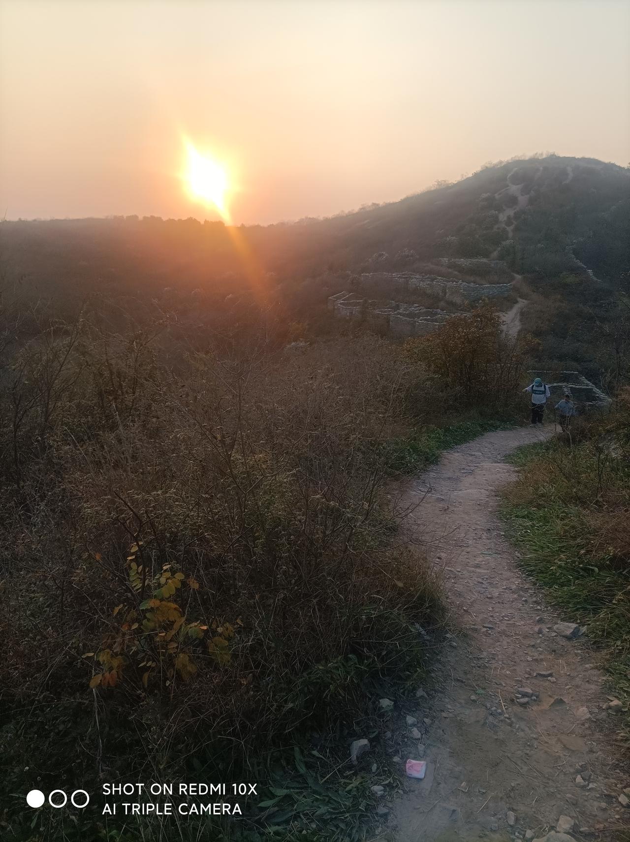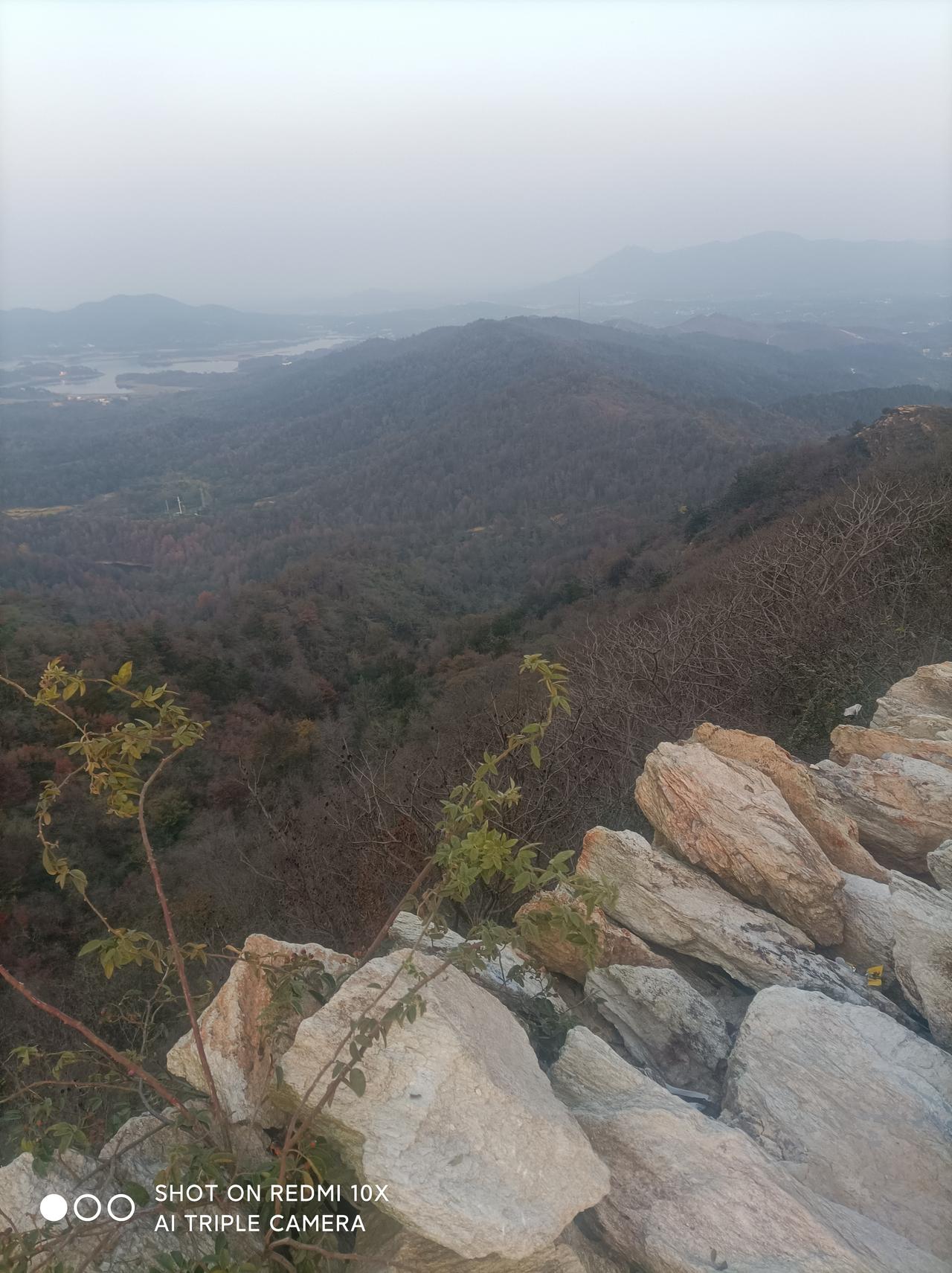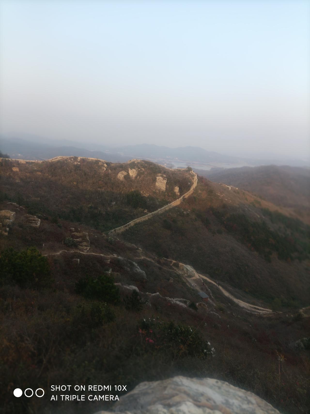 鲜为人知的武汉古长城一一 昨天下午1点,堂弟自驾车带我从汉口出发,经过1小时30分钟行驶,到黄陂城北李集街程岗村古寨遗址(又叫永安寨)蹬山游览。 景地是武汉市黄陂区一处保存较完好的明清古寨遗址。 蜿蜒雄伟的石砌城墙盘踞于山脊顶上,被称之为“武汉小长城”。已被列为湖北省文物保护单位,是当今游人户外徒步健身、观光、感受历史保留原物原形原境的独有风貌! 龙王尖山海拔385、6米,山顶城墙始建于明宣德二年(1427年),到清咸丰年间大规模扩建,同治七年(1868年)完全建成。 工程宏伟庞大气派,总占地面积1、5平方公里,寨墙周长约12公里,平均墙高3、5米;现遗存寨内残留1200多间石板屋基墙,房间布局巧妙合理,清析可见。 4点我们开始澄山,因是礼拜天,游人很多。 龙王尖山不算高,但是比较徒峭;蹬上半山腰,己是喘着大气、汗流满身,只有稍停步歇一下,回头看看山外风光,视野开阔、美景如画!山中已是层林尽染;山外远景河流、湖泊、高山映入眼帘,壮观、美丽、一饱眼福! 上到最高顶峰,都己喘着粗气汗流夹背。 遥看山外、山下风光,犹如仙境。 近处的各山寨石墙全收眼底;山脊的城墙犹如一条巨龙蜿蜒起复而卧、气势滂沱!远处的木兰山脉、旗司顶峰映入眼帘;碧蓝的木兰湖水清析可见! 完全体验印证了站得高、看得远的学说,真是一种至“高"无尚的享受! 山上一个多小时的观光游览,开阔了眼界、琢展展了视野! 5点多钟,太阳落山了,我们也欢心开心舒心乐意地下山返回,过上了一个难忘的周未!