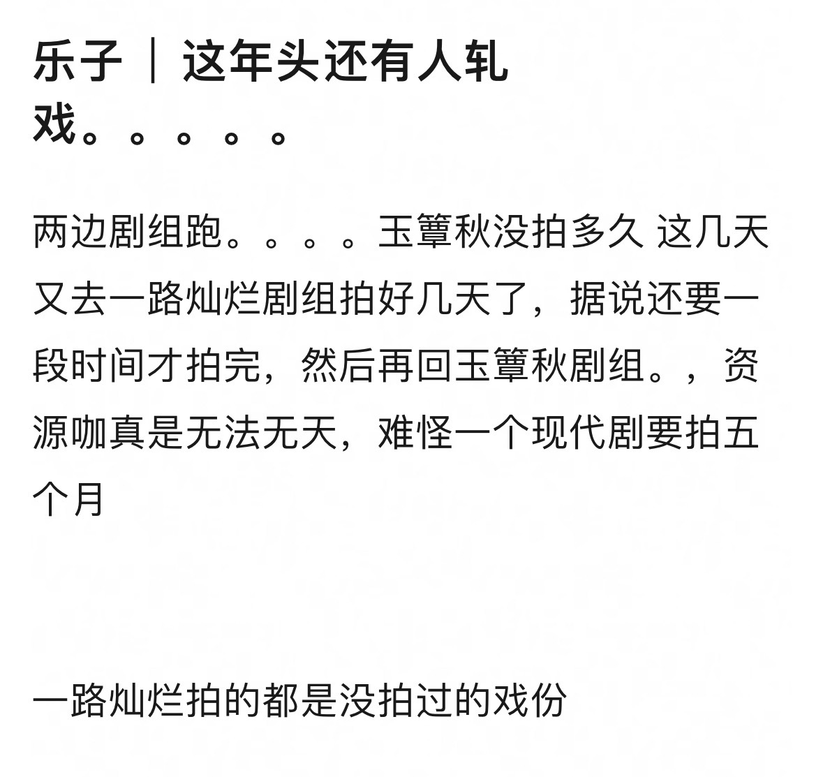 有网友说影视寒冬寒不到徐若晗,《玉簟秋》《一路灿烂》剧组两边跑,身为主演还轧戏,