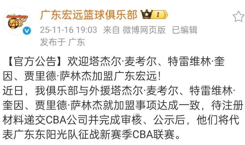 正式官宣!CBA争议外援加盟广东宏远,携手徐杰,冲击总冠军 萨林杰这名字在CBA又闹出动静了,广东宏远突然官宣他加盟,不少人心里直打鼓,前脚刚被北控给打发走,后脚就上了争冠队的船,这转手也太快了,球迷们怎么看都觉得不对劲。 萨林杰这几年确实打过几场亮眼的比赛,进攻端能里能外,不少人说他是大外援里最厉害的,可他训练老迟到,比赛没劲儿,体重一路涨,北控球迷都看不下去了,上赛季季后赛直接把他骂上热搜。 广东宏远这次为啥冒这个险,老球迷都明白,CBA现在找靠谱的大外援,比找对象还难,要么不会打,要么人不可靠,朱芳雨在发布会上憋着笑说球队需要即战力,明眼人一听就知道,这赛季不冲冠,养外援就白养了。 萨林杰和广东这阵容还真挺搭,新秀焦泊乔跑得快跳得高,和他一起打双塔能把空间拉开,徐杰这种小个子后卫就爱跟会传球的内线搭档,俩人挡拆说不定真能打出点名堂,不过最大的问题还是态度,球迷们私下都说,这外援上场别跟大爷似的行不行。 现在就看杜锋怎么带这支队伍了,广东队更衣室一向规矩,真有不守规矩的,他也不会惯着,萨林杰要是能收住性子,冠军还有指望,要是再折腾,明年这时候肯定又得上热搜。
