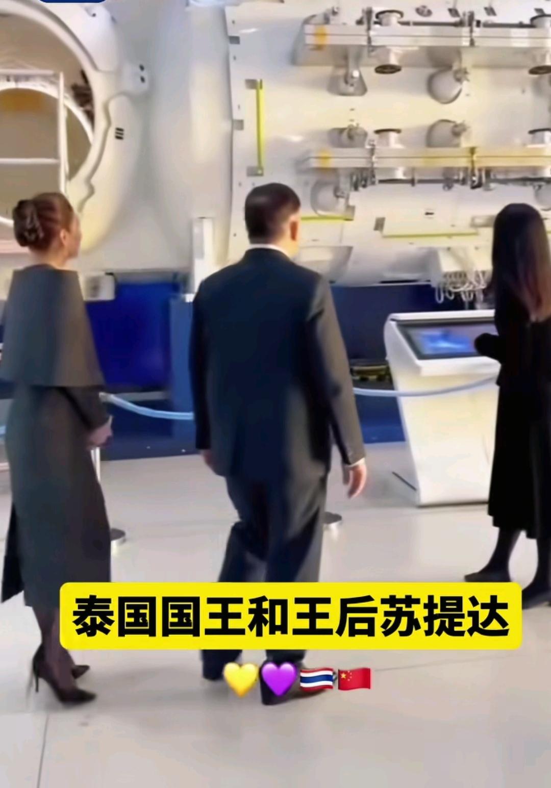 11月16日,苏提达陪同泰王参观航天飞行控制中心,苏提达又换了一身造型,穿着黑色高跟鞋、丝袜、灰色泰装裙子,衣服的造型戴有披肩很特别,漂亮的大耳环看起来很漂亮。 负责给苏提达介绍载人航天产品的小姐姐也很漂亮,穿着黑色套装裙,内搭黑色底裤,穿着黑色小平底鞋,一头柔顺的头发飘落在肩膀,很优雅。 苏提达的贴身女保镖,站在一旁,时刻警惕,保证苏提达的安全。