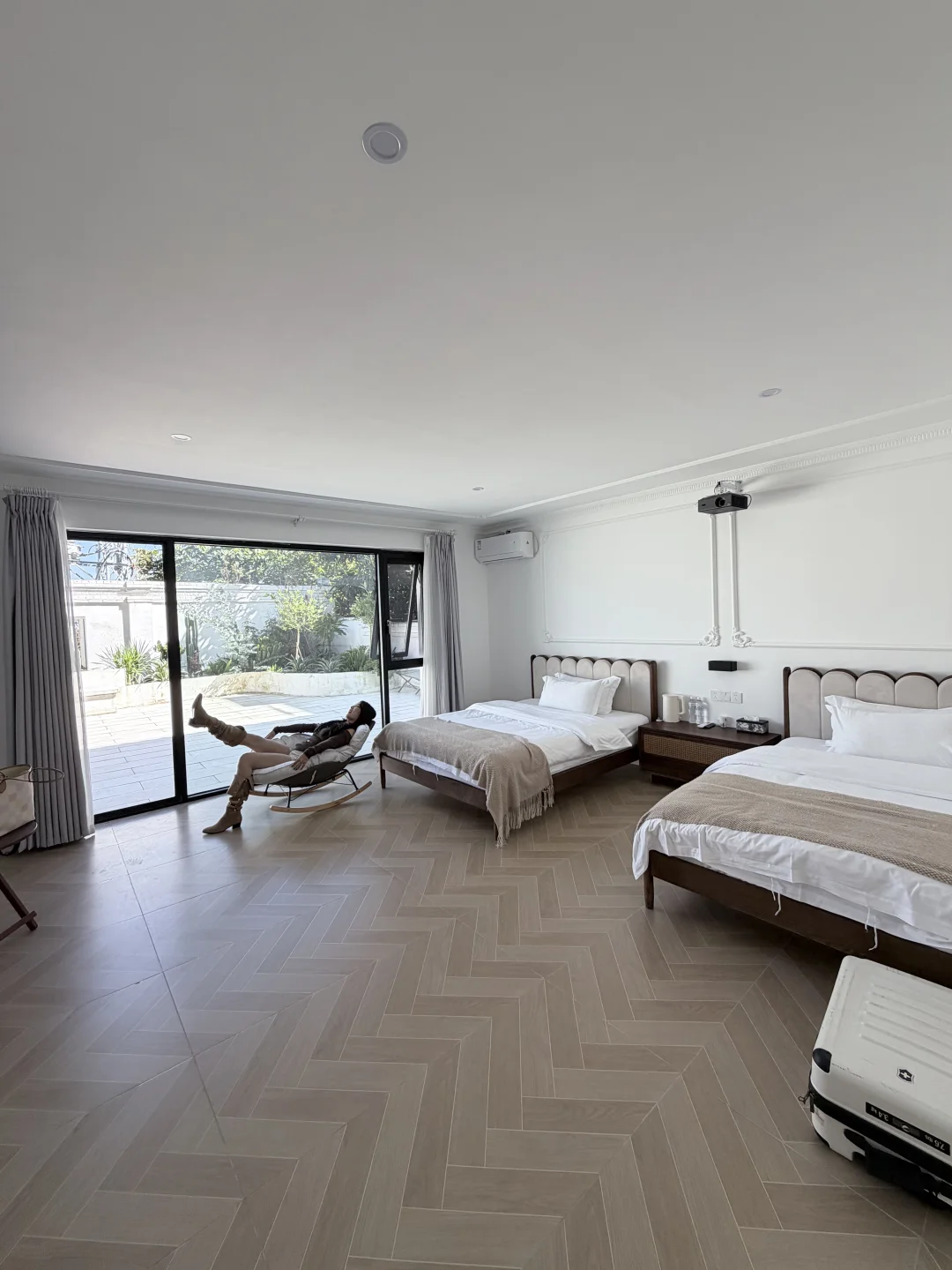 来大理的第二站 是距离古城很近的一家很有爱的❤️民宿 不远处就有很多集市,有很多蔬菜水果可以购买 从这里去古城区,只要10分钟非常的方便 这家民宿的外观特别像新海诚的动画片🎬里面的场景,被绿植🪴环绕的感觉很治愈,香在春日里 公共区域随处可见,苍山洱海非常chill🍻 房间特别的大和宽敞明亮整张的落地窗仿佛打开了心灵的大门🚪 房间整洁干净,摇椅很舒服,卫生间干净无死角 前台小姐姐很贴心💕 最喜欢他们家的咖啡豆是巧克力味☕️的,有非常丰富的油脂 是想再来的好地方~