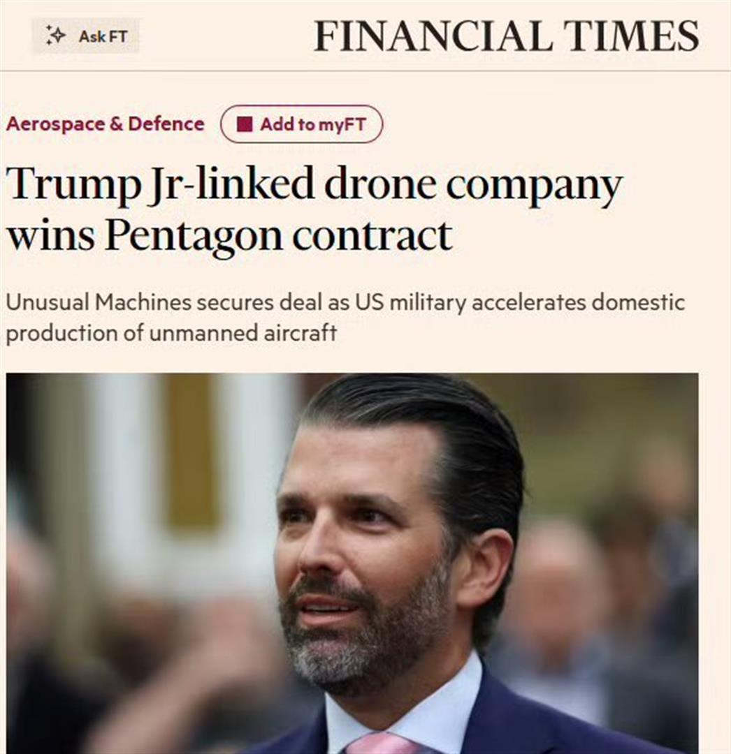 全世界最黑,却又最安全的职业——老美的史密斯专员。 1、15美元的“黑鹰”屏幕控制旋钮。 ​2、义乌小商品一袋不用100元人民币的螺丝,采购价9万刀。 3、一个淘宝几百块人民币的咖啡壶,采购价十几万刀。 4、PDD砍一刀后几百块的马桶,采购价160万刀 看到这些震惊不?最不可思议的是没有人需要为这些事情负责,史密斯专员却一个个赚得腰包鼓鼓。 你以为老美为啥这么爱打仗,这不大炮一响,黄金亿万两啊!这么安全、高效的来钱方式,谁不爱呢! 打的时候搜刮一番,又能卖武器赚一笔,还能在生产武器的时候再赚一笔,一箭三雕啊!换谁来,谁都乐意来! 你看看,老特大儿子这不就中标了一大大合同了吗?一个史上最大规模的无人机零部件合同,而这只是一家名不见经传的初创小公司。