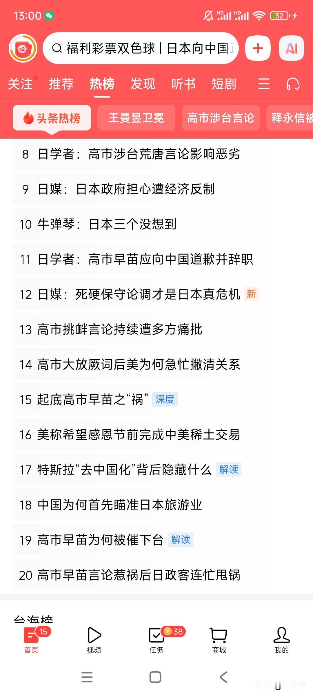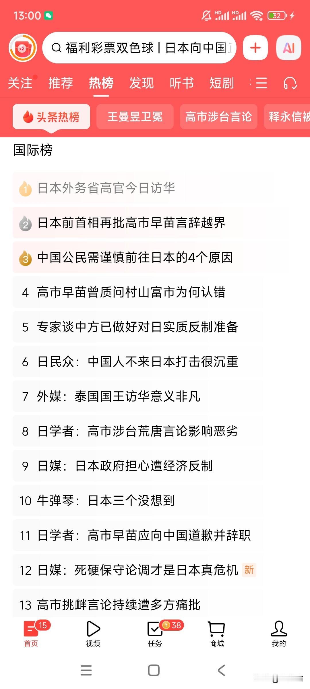 据外媒,日女首相连续多日霸屏热榜热搜,成为继特朗普之后又一个“国家级大网红”,打开国际榜单前20个热门话题,日本高市早苗占了16个。真可谓称为“独霸”。