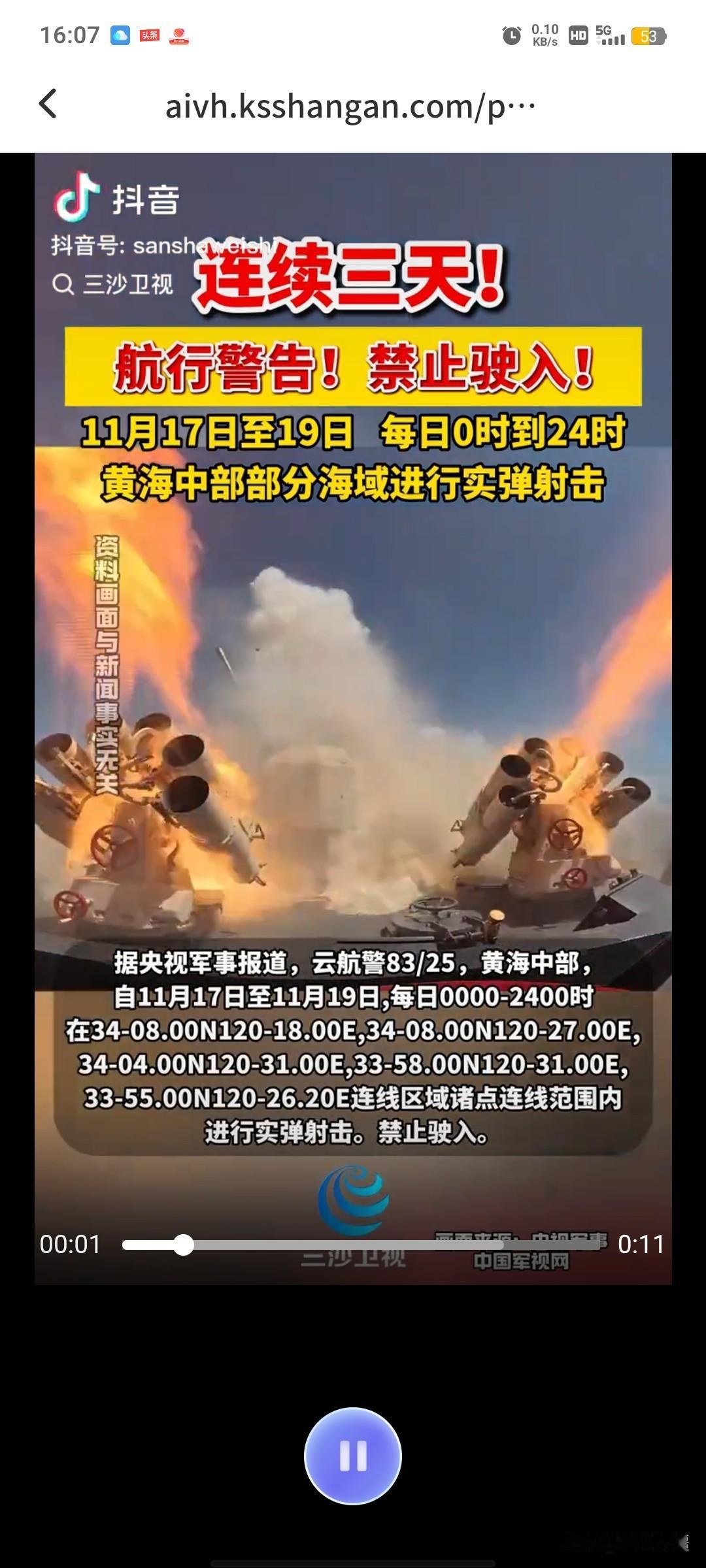 紧急封航! 云航警83/25生效!黄海中部17-19日全天实弹射击,所有船只禁入
