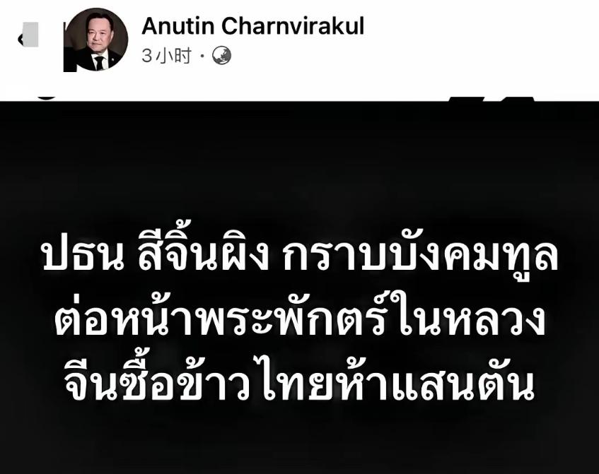 泰国总理阿努廷发帖,直言泰王谈成了50万吨泰国大米的买卖,纪念中泰建交50周年,