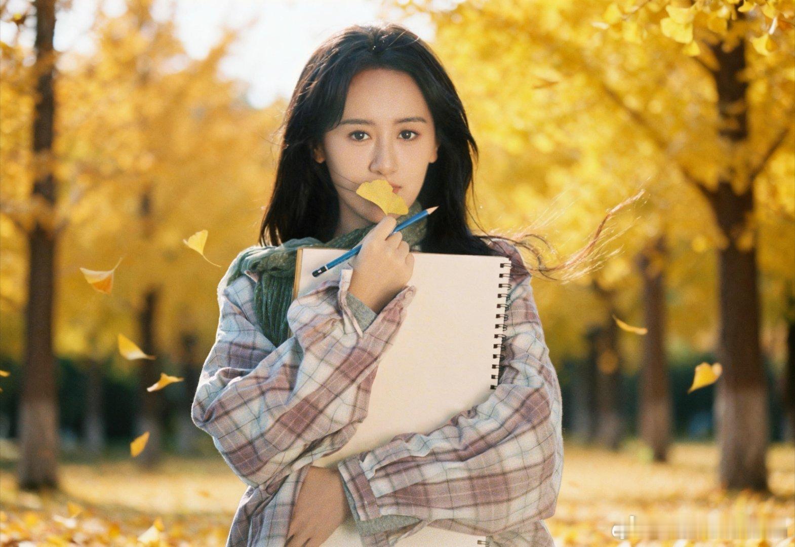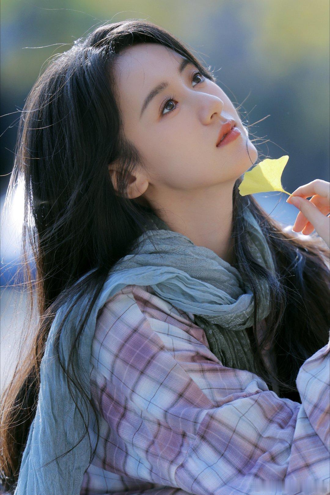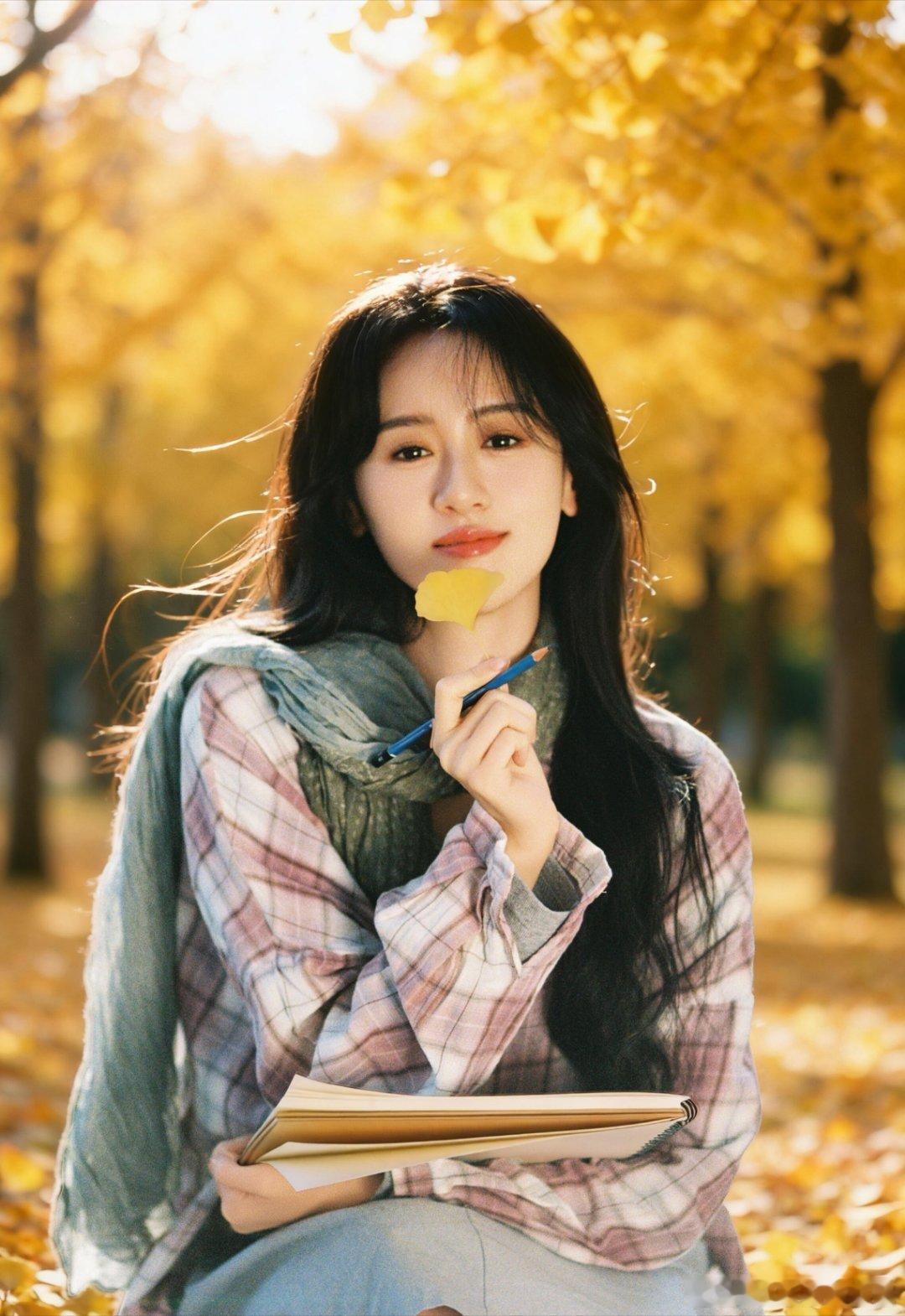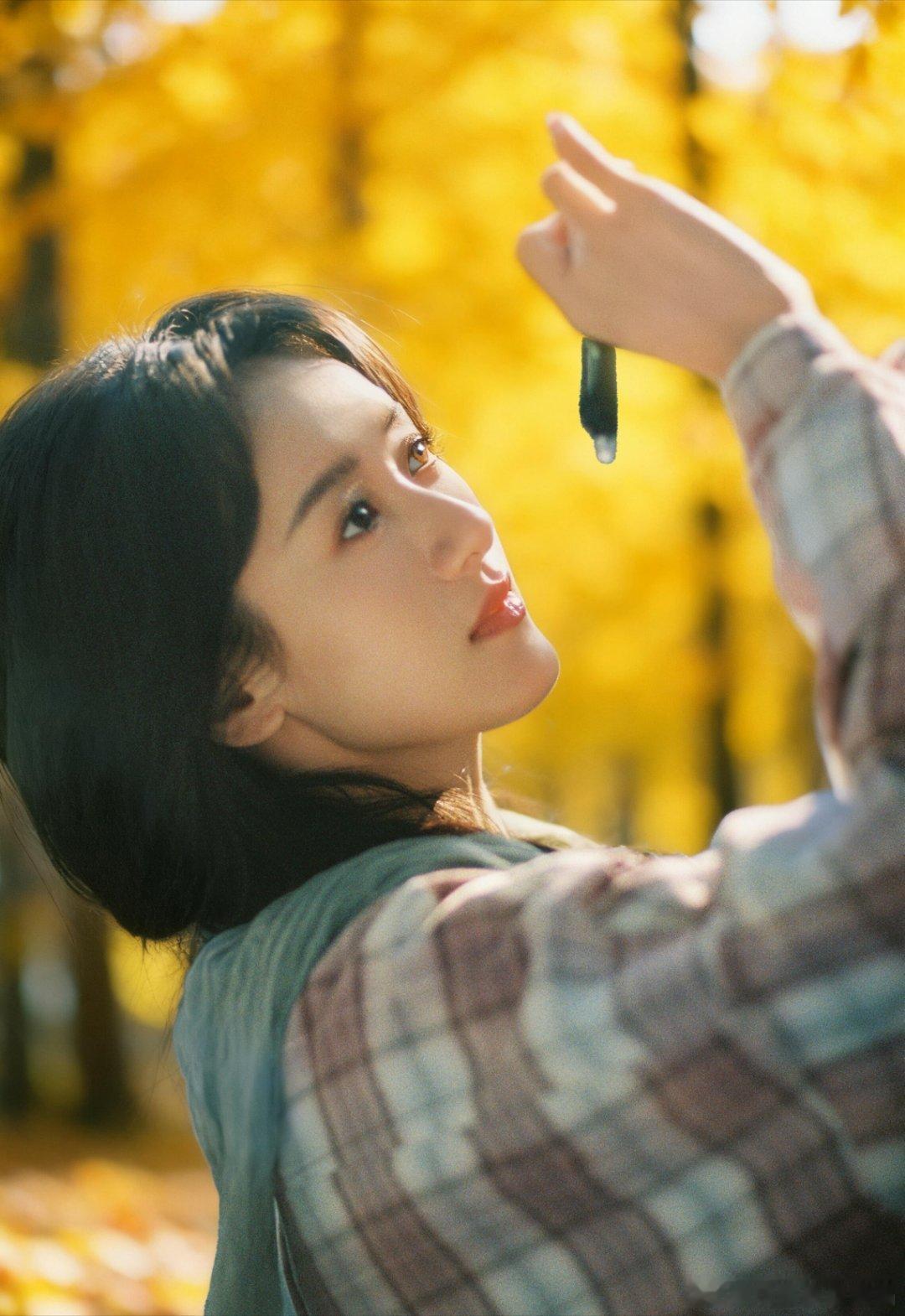 北京的秋天最美丽了,尤其是银杏树下!袁冰妍最近的营业好像大学生,校园里文艺知性的女生,她好像没演过校园剧吧