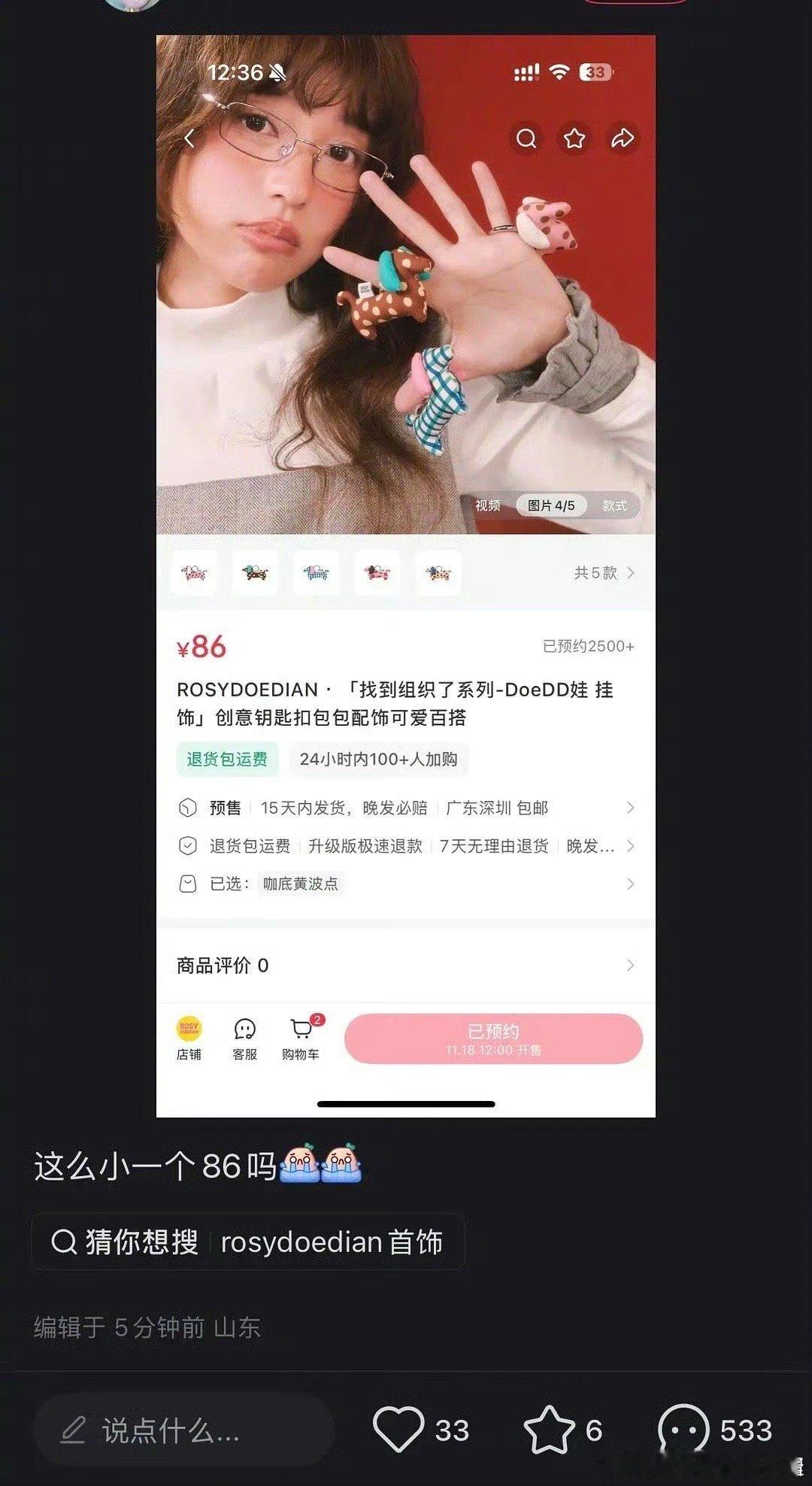 赵露思品牌的钥匙扣和发卡都86一个,太贵了吧