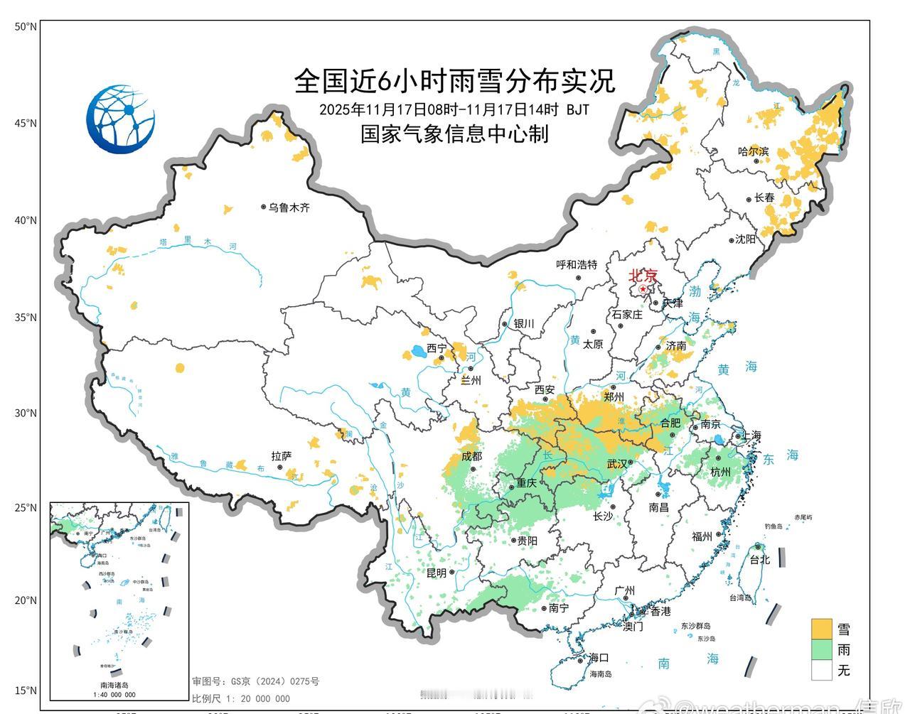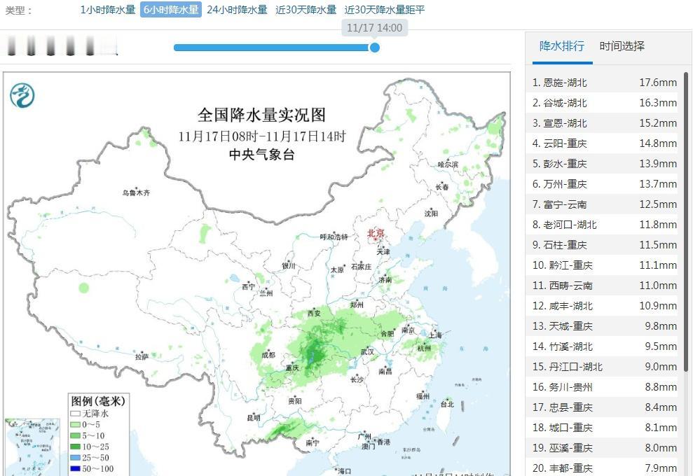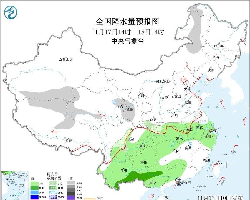 【雨雪】今天08-14时,降水主要在重庆湖北河南安徽和周边一带。其中湖北西部和北部、陕西东南部、河南南部、安徽西部以及沿淮河一带,出现了降雪。今天下午到明天中午,降水会减弱南压。此外横槽南压,在青海西宁到甘肃兰州一带,可能导致降雪。兰州能否迎来初雪,有悬念。不利因素是低空比较干燥,但有动力抬升,重点就是看今晚。