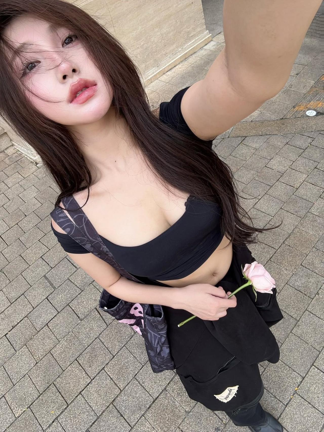 🌊 雾灰背心掐出的腰,裹在奶白裤里的臀,是被海岸线衬得更惹眼的「黄金比例」。