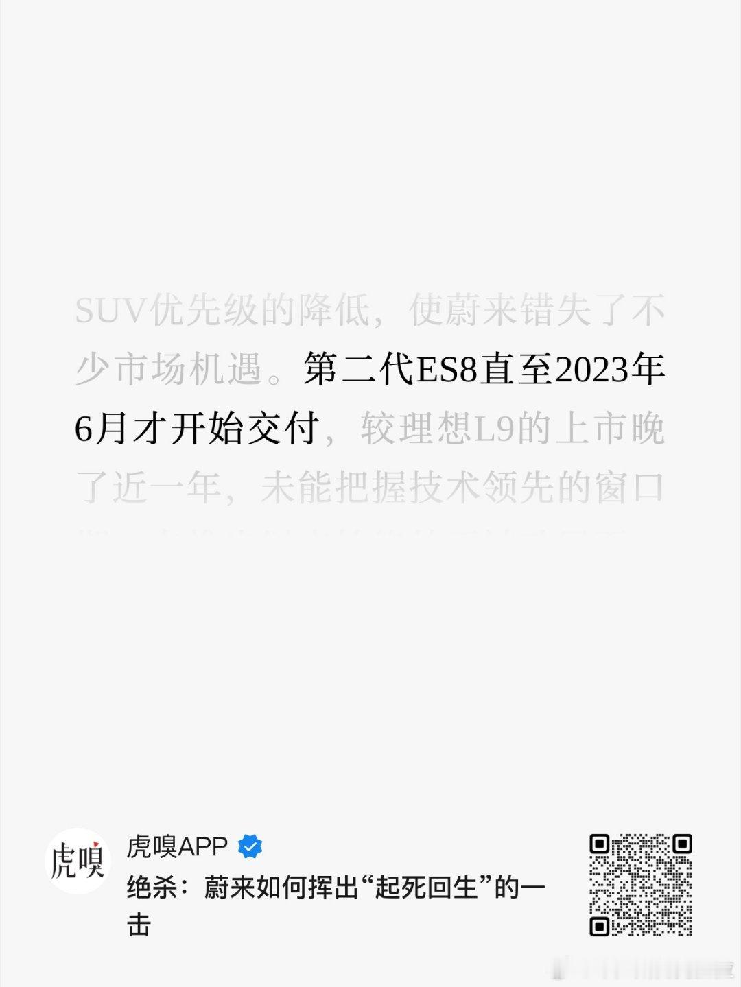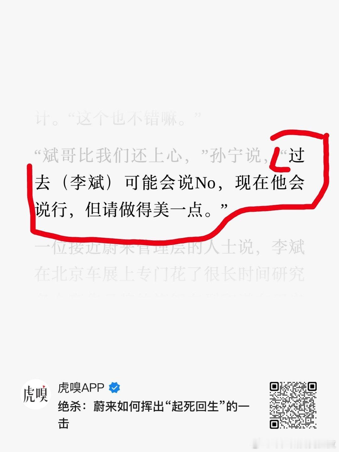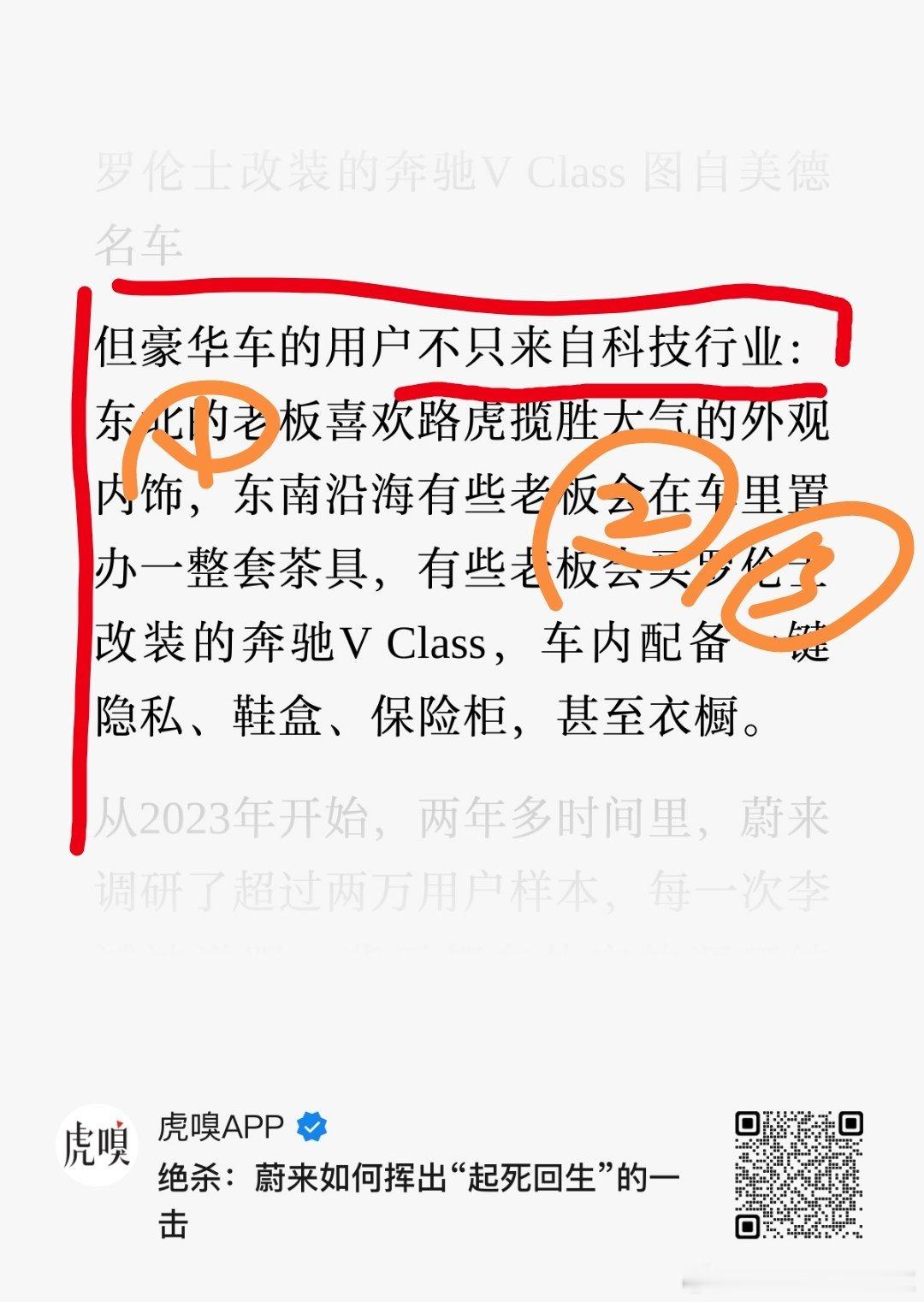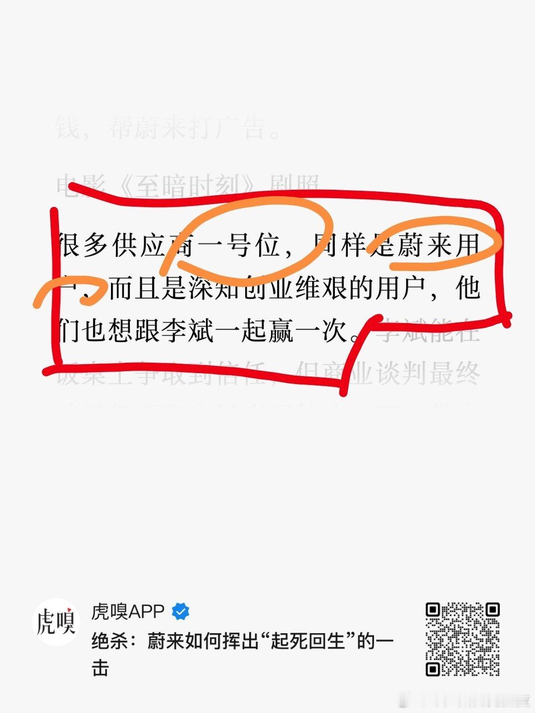 微博居然可以加载 17 张图片,虎嗅今天早上八点过发的这篇写蔚来的文章时间轴清晰,故事写实。其中从 2022 年开始的一系列描述恐怕是很多人心里大约清晰,但是我没办法对外讲的。我把截止 2025.08 之前的几乎所有文章中提到的时间线都转发出来了,根据这个时间过程可以单独梳理一个短篇幅,叫《怎么造的现在这台 ES8》而图一到图三这三张图,使用红色笔记画圈或橙色笔记画圈:是从 2022 年开始斌哥本人、蔚来公司(企业)、外部一度连接圈前两者是复盘和 learning最后外部一度连接圈则是这个世界温柔与残酷双并行的一面。无他,唯有自己产品强、体系强,方能闭环。