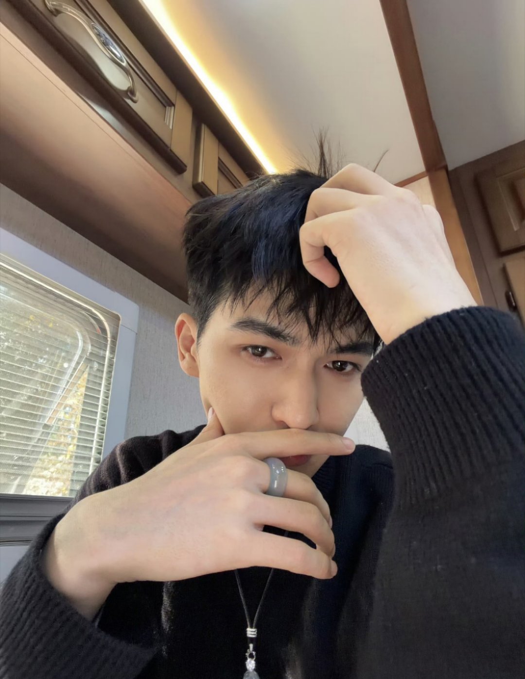 没错就这样自拍!看来今天天气不错嘛朱正廷心情也是棒棒的