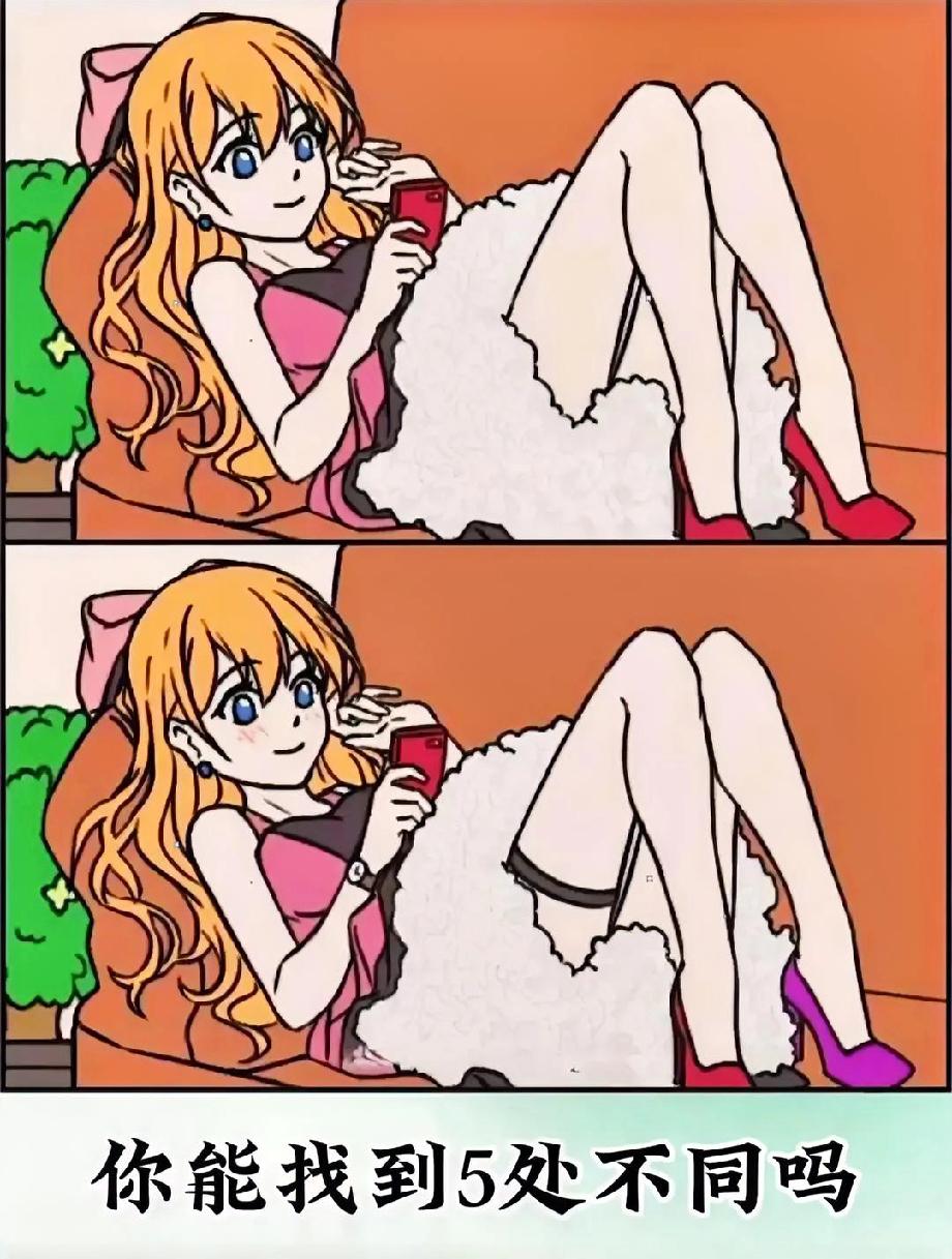 动漫美女图藏5处不同,据说80%的人找不全,你能当那个“细节王”吗?