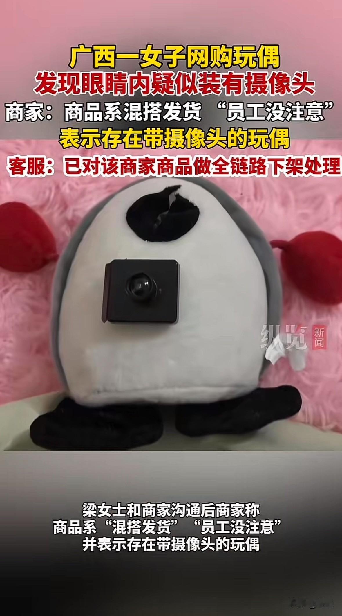 11月16日,广西贺州的梁女士爆料,网购的20个玩偶套装里,有个玩偶的眼睛里藏着疑似摄像头,还是孩子抠眼睛时发现的。她找商家沟通,对方说是混搭发货时员工没注意,还承认确实有带摄像头的玩偶。17号涉事平台已经把商家商品全链路下架,现在也搜不到这家店了。 这事想想就后怕,玩偶大多是孩子玩的,藏摄像头简直是侵犯隐私。商家的解释太敷衍,带摄像头的玩偶怎么能随便和普通玩偶混搭卖?平台下架虽及时,但事前监管得到位啊。希望能好好彻查,也提醒大家买这类商品多留意,遇到异常赶紧排查,别让玩具变窥私工具。