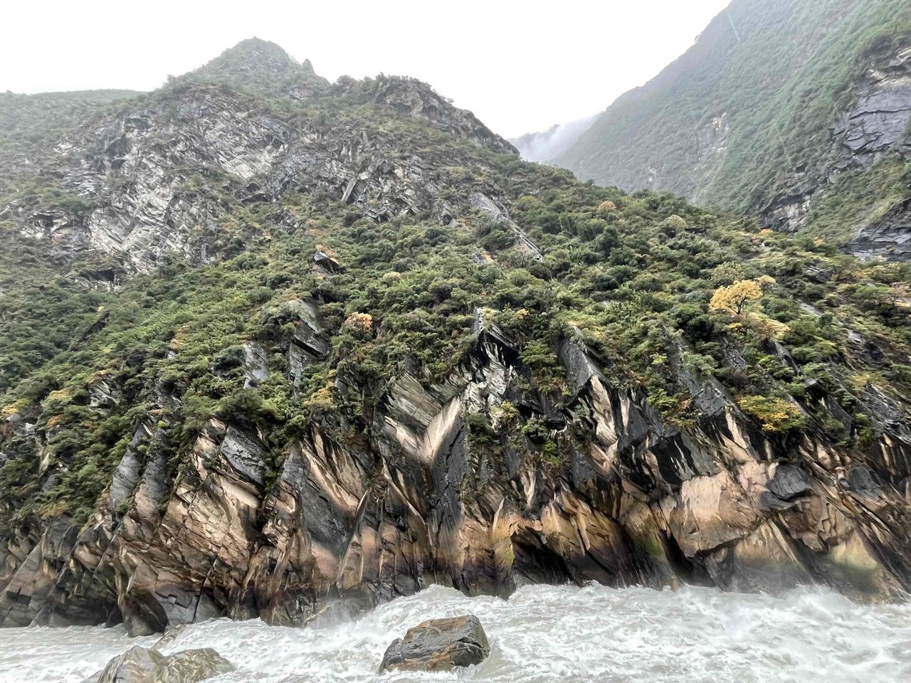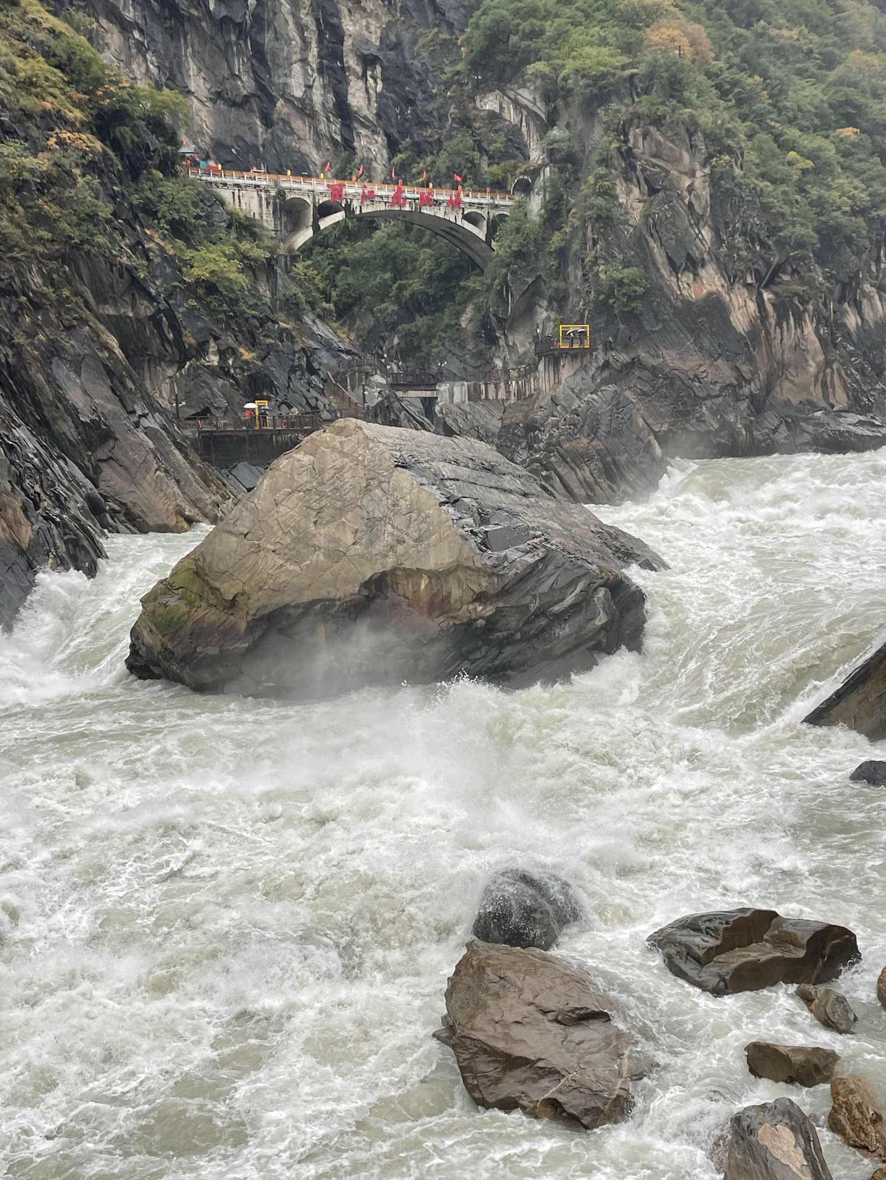金沙江、澜沧江和怒江在云南省并行流淌达170多公里,形成了三江并流的自然奇观。 金沙江虎跳峡被誉为“万里长江第一峡”,图片呈现的是上虎跳,是峡谷最窄处,高13米的虎跳石横亘江心,江水翻过虎跳石,激起惊涛骇浪,形成虎跳峡的壮丽景观。