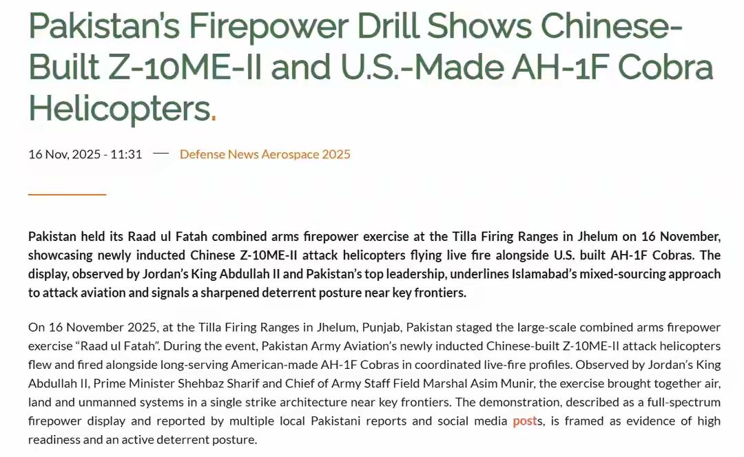 约旦国王询问直10ME性能有购买意向美军装备或将失去一重要盟友 据美国陆军认知网站11月17日消息,约旦国王阿卜杜拉近期会见了巴基斯坦陆军元帅穆尼尔,问其询问了巴军装备的武直10ME的性能。并要求其尽快安排其到约旦对其进行展示。 约旦计划采购30架武装直升机的合同,之前一直是和美国接洽会谈的。现在突然又开始中意中式装备,这可是与以色列接壤的国家美国的铁杆盟友。一旦这笔军售谈妥对美国的打击可太大了。