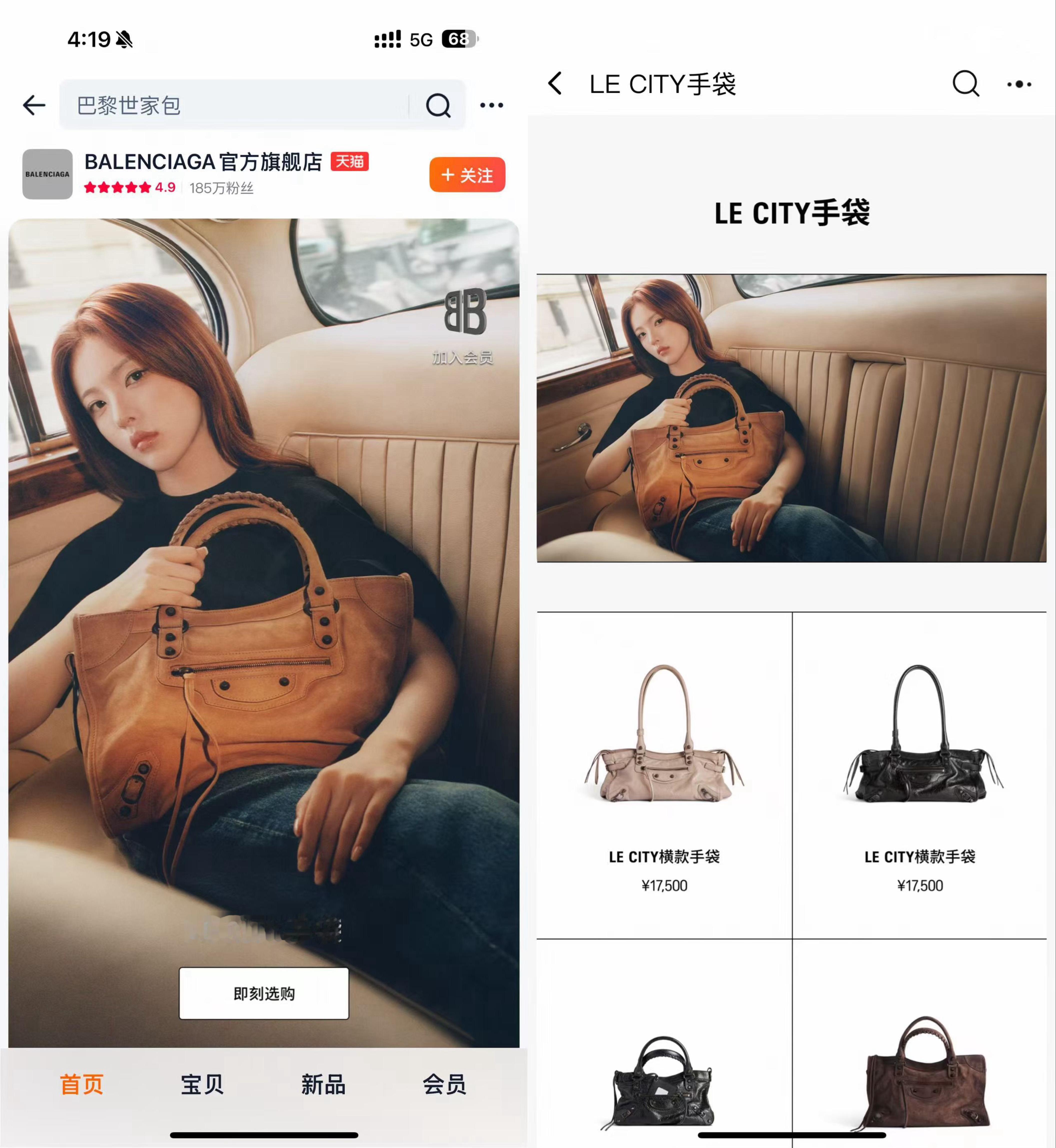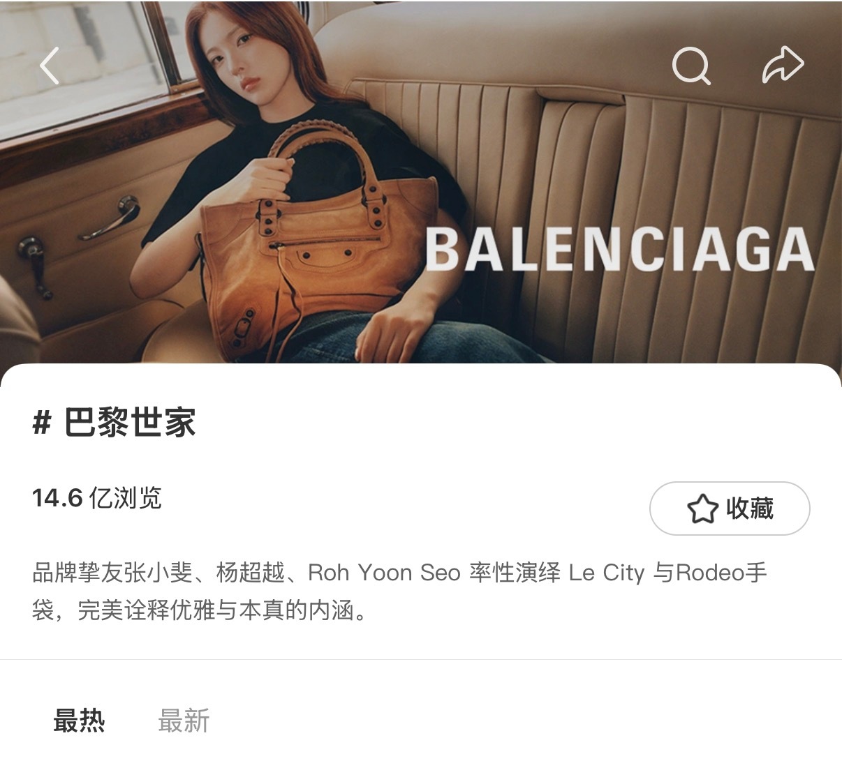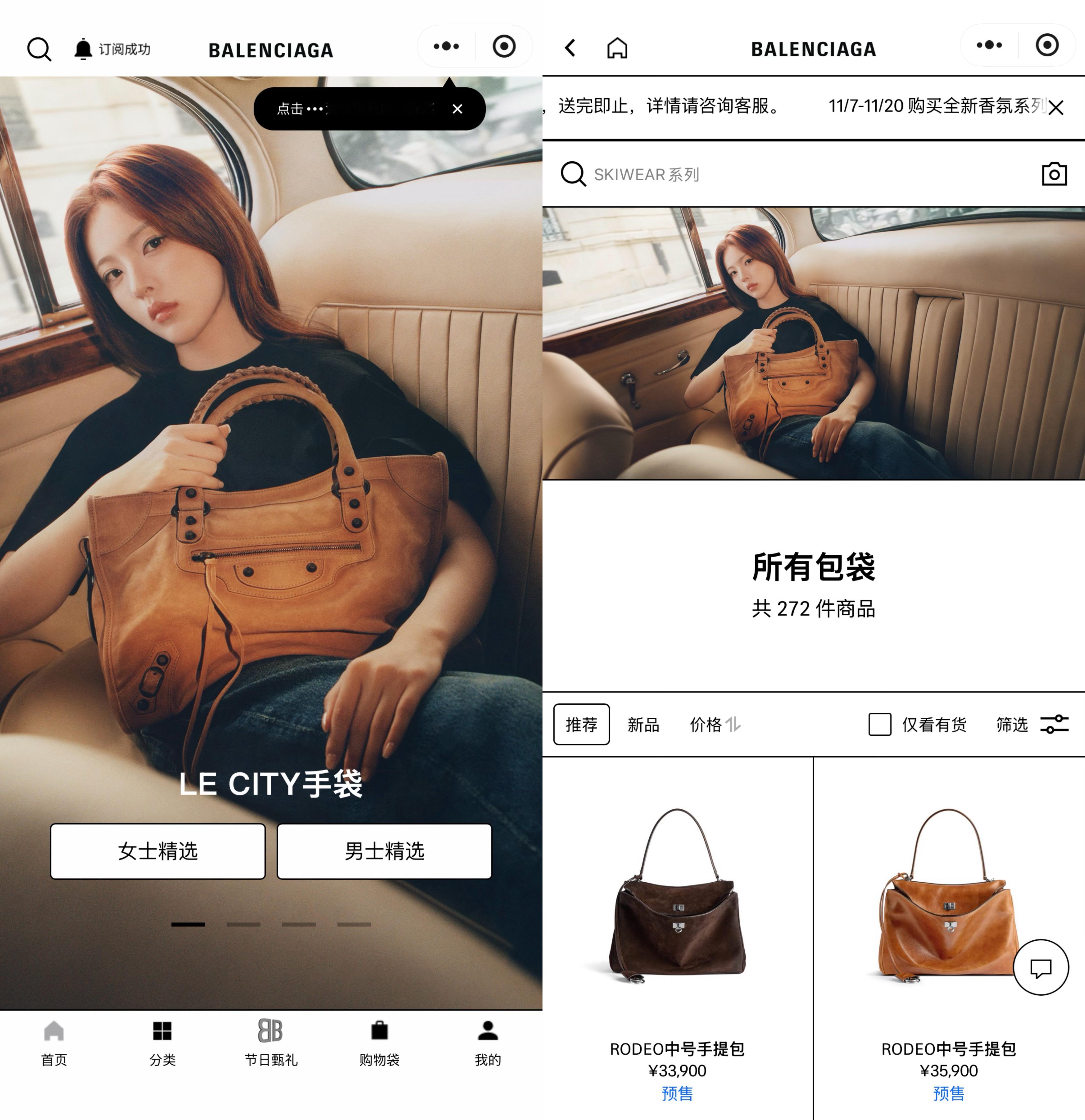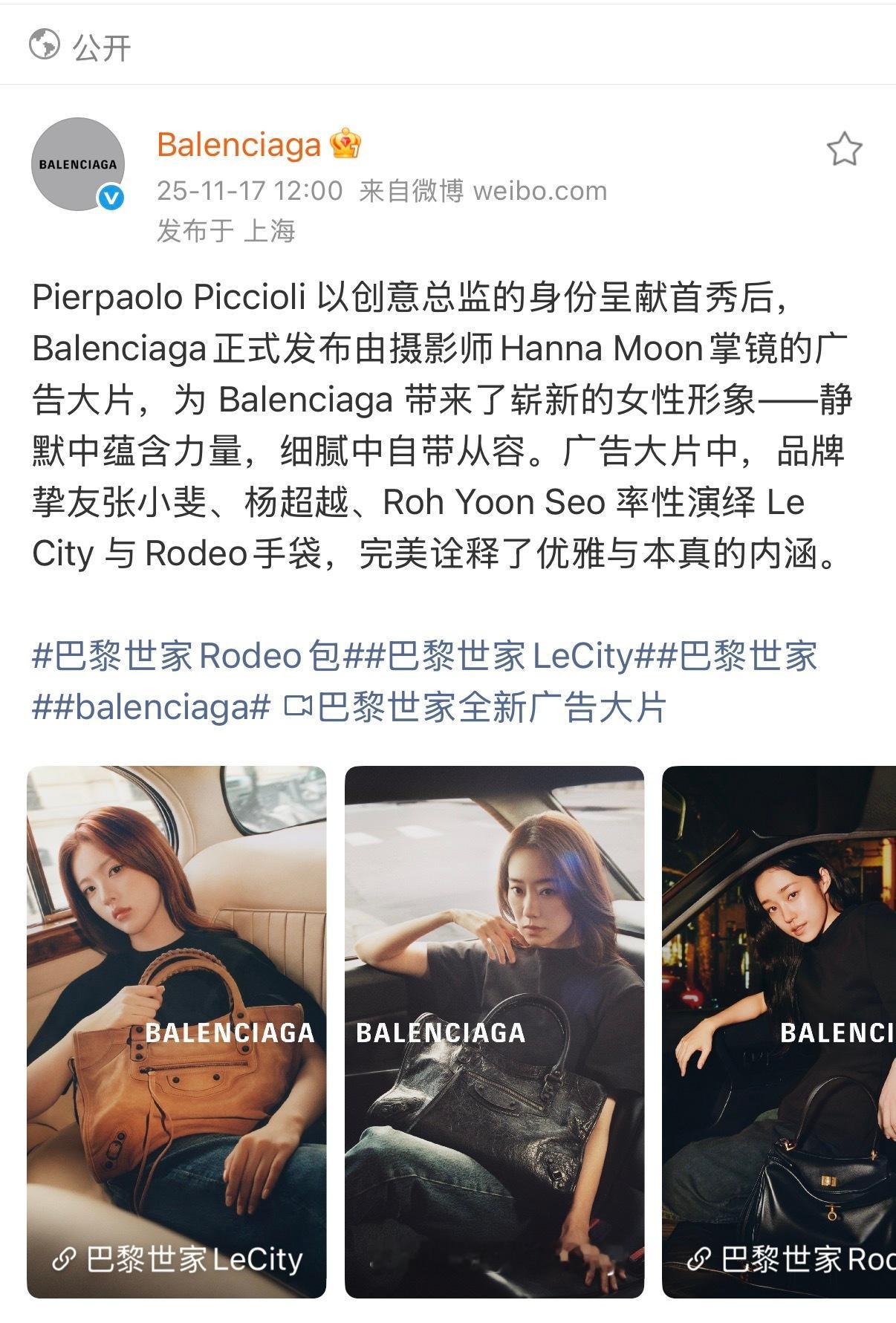 巴黎世家x杨超越 全方位安排头图覆盖:官网,🍠话题页,🧣,vx小程序,🍑另外还有,线下地广和🧣开屏。官网le city麂皮手袋中号已缺货 ·