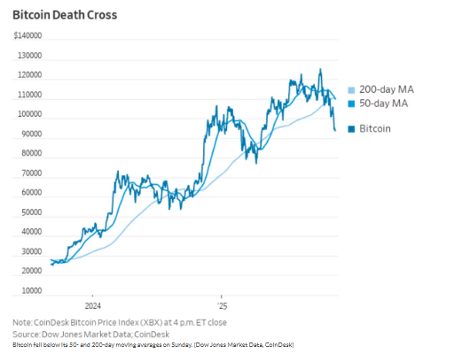 周日,比特币跌破50日和200日移动均线,出现自2018年以来的第九次“死亡交叉”,也是自4月7日以来比特币首次出现死亡交叉。 死亡交叉在技术分析上通常被视为一个看跌信号,暗示可能正在形成长期下行趋势。周一,比特币下跌约1%,价格在92,498美元左右。(市场观察)为海外华人提供有价值的信息与分析,更多内容和全文可在蓝天、电报、x查找causmoney,或直接谷歌搜索