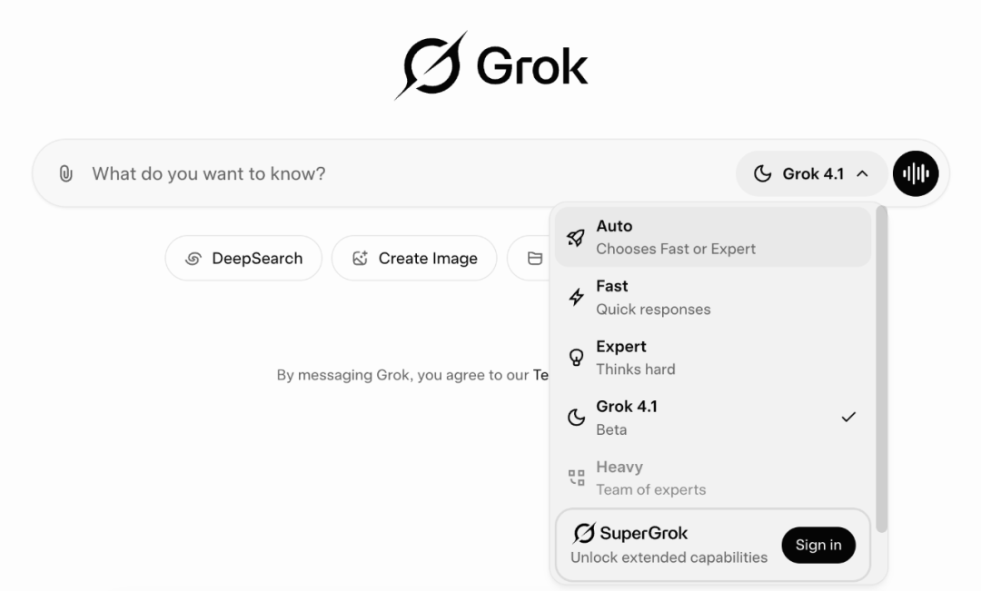 Grok4.1将立即在Auto模式中推送,并可在模型选择器中手动选择。
