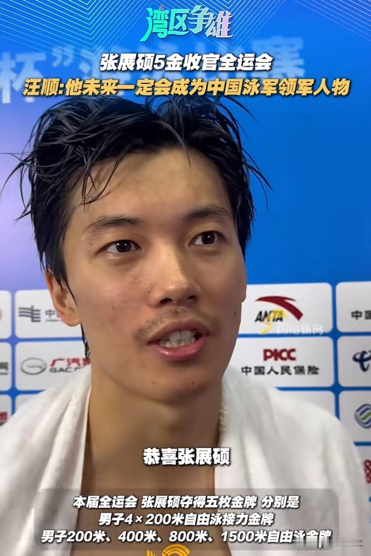 汪顺赛后这番发言:体现了他的格局和大哥风范! 汪顺说:恭喜张展硕,他获得了 4 枚金牌,他绝对是中国游泳,未来的领军人物,希望大家多关注他,期待他未来的表现。 汪顺这番发言是有格局的,在全运会的赛场,省与省之间就是竞争对手,但汪顺站在了国家队的高度,去赞扬张展硕,这体现了他的格局[赞][赞]