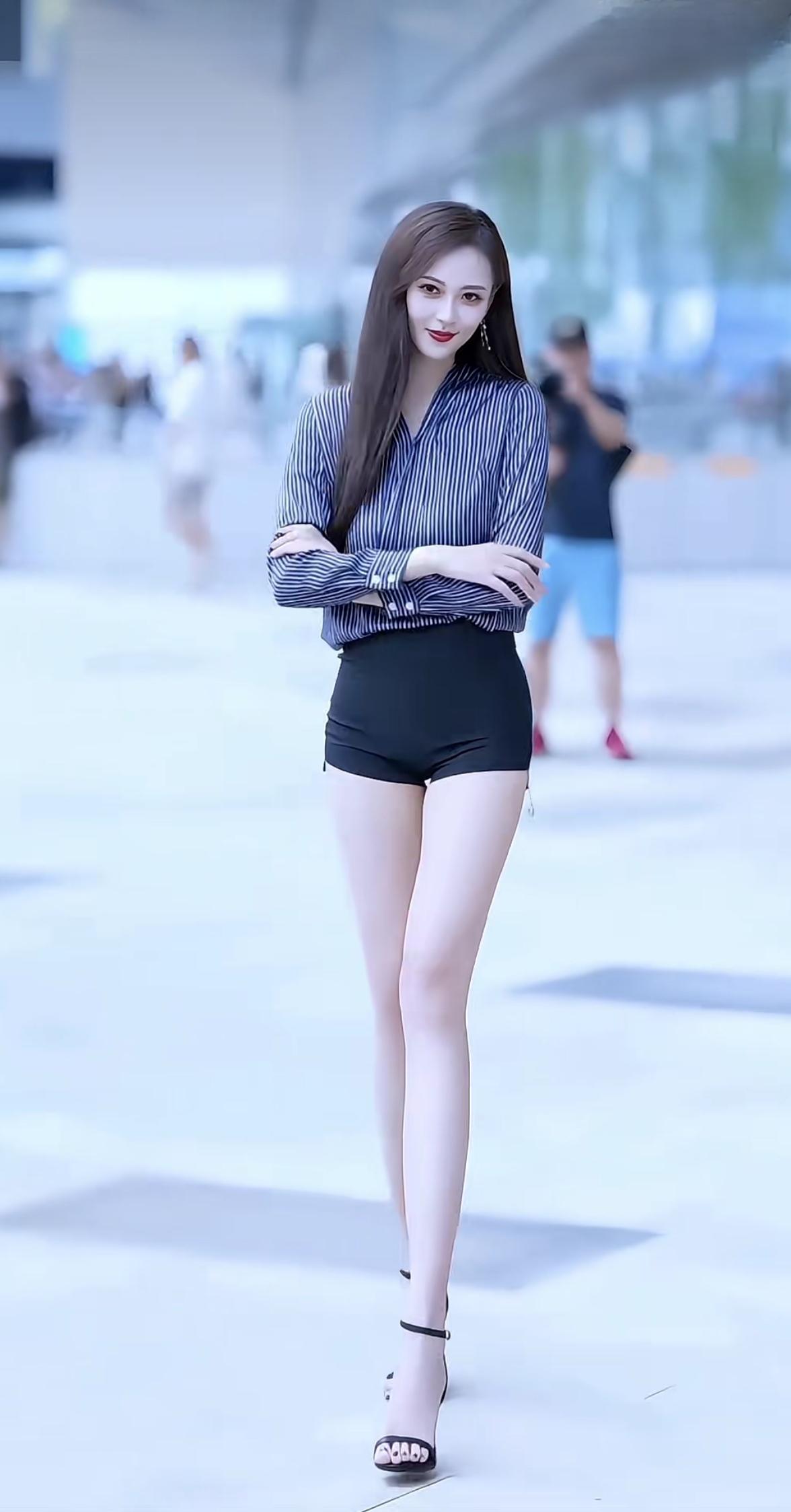 都市酷女孩穿搭指南,黑白条纹衬衫+黑色短裤,时尚又帅气!