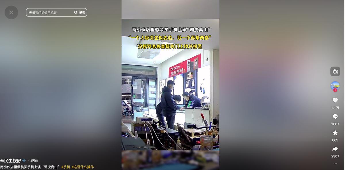 万万没有想到,河南,两小伙商量好“调虎离山”计后,假意到一家手机店买手机,期间二人商量好看手机过程中,其中一人直接拿起手机“零元购”逃跑,趁老板追出去店内无人之际,另外一人又趁机拿走手机。可让他们没想到的是,一小伙拿着两部手机逃跑后,老板并没有激动的追出去,而是将计就计冷静的反锁了店门,报警留下了另一位还在店内的小伙。 事儿发生在一家普通的手机店里,那天店里就老板一个人忙活,没过多久进来俩年轻小伙,说是想看看新款手机,还专门盯着店里那款价值一万三千多的高端机型问东问西。老板一开始没多想,只当是正常顾客,热情地拿出来让他们上手体验。 可这俩小伙的举动,其实早就透着不对劲,俩人眼神总偷偷交流,站位也刻意分开,一个挨着门口,一个围着柜台,看着像是在看手机,实则一直在暗中观察店里的情况,琢磨着什么时候动手。 原来这俩人事先早就商量好了 “调虎离山” 计,先由一人假装看手机,找准机会直接拿上手机 “零元购” 跑路,故意引老板追出去,等老板一离开店里没人看管,另一个人就趁机多拿几部手机然后溜之大吉。 在他们看来这计划简直天衣无缝,毕竟谁看到自己一万多的手机被抢,不得急得跳脚,第一时间追出去?可他们千算万算,就是没算到老板的反应会这么反常。 就在老板转身想给他们拿充电器演示的时候,其中一个小伙突然抓起柜台上的两部高端手机,拔腿就往店外跑,动作快得像一阵风,嘴里还喊着同伙快跑。 按说这时候,老板该下意识地追出去,可让人没想到的是,他盯着逃跑的小伙看了一眼,瞬间就识破了这是 “调虎离山” 的套路,他心里跟明镜似的,一旦追出去店里就空了,剩下的那个小伙肯定会趁机洗劫柜台,到时候损失就不是一两部手机了,说不定还会有危险。 所以老板没半点犹豫,非但没追反而立刻转身,以最快的速度冲到店门口,“咔嗒” 一声就把玻璃门反锁了,这一下留在店里的那个小伙直接傻眼了,本来都伸手要去拿柜台上的其他手机了,见状瞬间僵在原地,脸上的得意劲儿一下子变成了惊慌失措,他怎么也想不通,老板居然不按常理出牌,不追逃跑的同伙,反而把自己锁在了店里。 看着被锁在店里、慌得团团转的小伙,老板一点都没慌,淡定地掏出手机报了警,还不忘跟警察说清楚店里的情况和小伙的样貌特征,被锁住的小伙试着拉了拉门,发现门被锁得死死的,又想找地方躲,可手机店里就那么大点儿地方,根本没地方藏身,只能眼睁睁地等着警察来。 这时候他才明白,自己和同伙的计划彻底泡汤了,本来想 “调虎离山”,结果反倒被老板 “瓮中捉鳖”,把自己给坑进去了,警察接到报警后,很快就赶到了现场,没费吹灰之力就把留在店里的小伙给控制住了。 经过审讯这个小伙一五一十地交代了他们的作案经过,还供出了逃跑同伙的藏身之处,警方顺着线索追查,仅仅过了 12 个小时,就把那个逃跑的小伙也给抓了回来。 可惜的是被抢的两部手机已经被他们低价转卖了,赃款也被挥霍一空,但俩人最终还是为自己的盗窃行为付出了代价,不仅要面临法律的制裁,还得在人生履历上留下一辈子都抹不掉的污点。 这事传到网上后,网友们都为老板的冷静和智慧点赞,有人说:“换谁遇到这种事,第一反应可能都是追出去,可这老板居然能瞬间冷静下来,反锁门留下同伙,太厉害了!” 也有人调侃:“俩小伙怕是没料到,自己的‘调虎离山’计,最后变成了‘自投罗网’计。” 还有人感慨:“遇到事儿真不能慌,越慌越容易出错,老板这波冷静操作,既保住了店里的其他财产,又帮警察抓住了嫌疑人,简直是双赢。” 现在社会上难免会遇到一些不法分子,他们总想着耍点 “小聪明” 占便宜,可他们忘了再周密的计划,也敌不过冷静的头脑和理性的应对。 河南这位手机店老板的做法,不仅让俩盗窃小伙的阴谋落了空,也给大家上了生动的一课,真正的安全感,不光靠坚固的门窗,更靠遇到危机时那份不慌不忙、权衡利弊的理性力量,希望更多人能从这件事里学到经验,遇到事儿别冲动,冷静下来想办法,才能更好地保护自己和身边的财产安全。 (信息来源:民生视野)