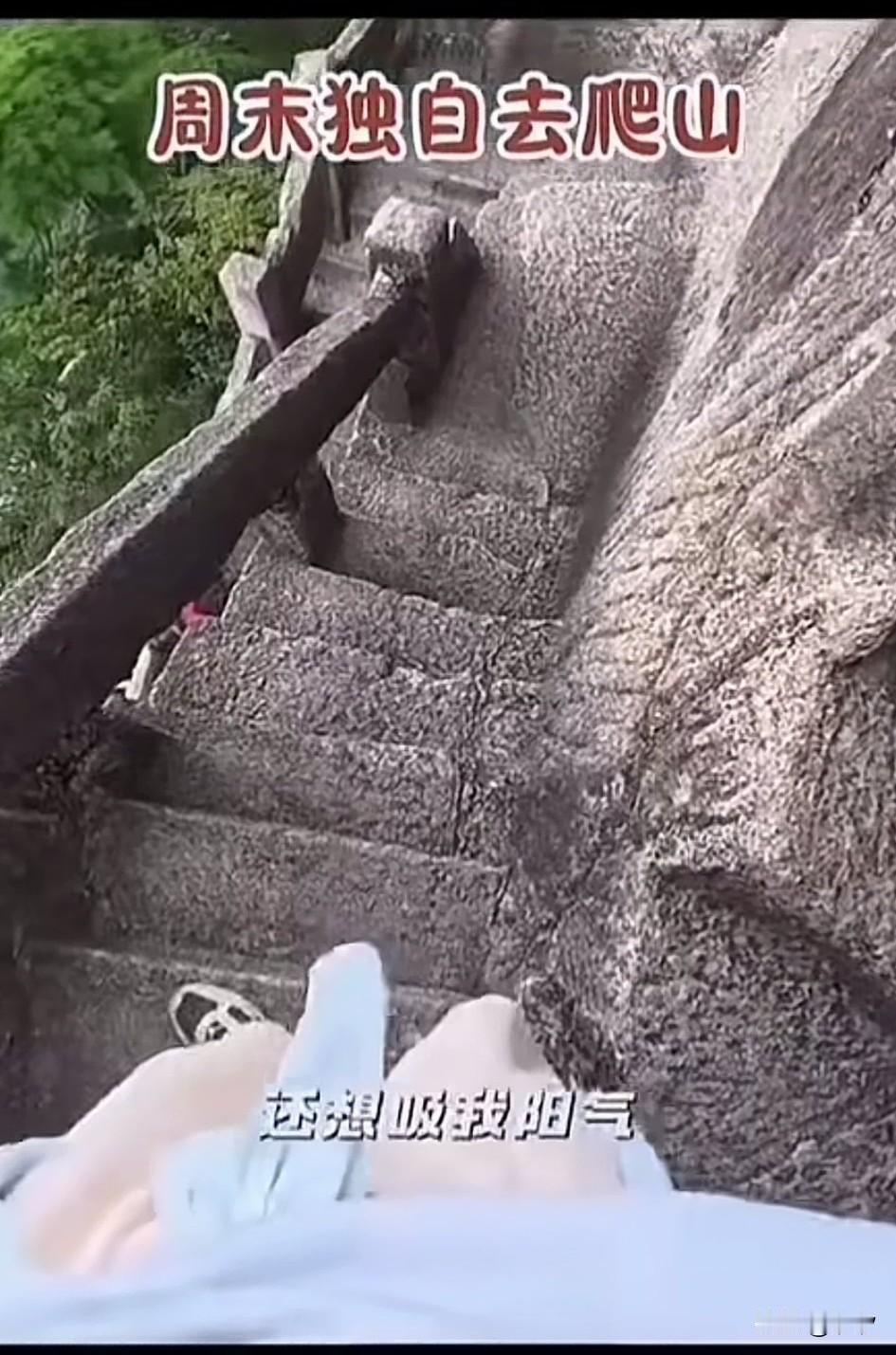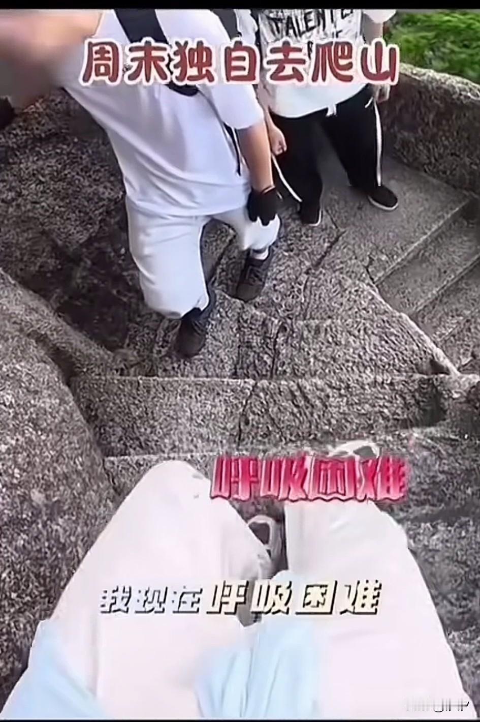 女子周末独自爬山, 爬山的时候一点事也没有, 下山的时候腿有点抖, 呼吸还很急促
