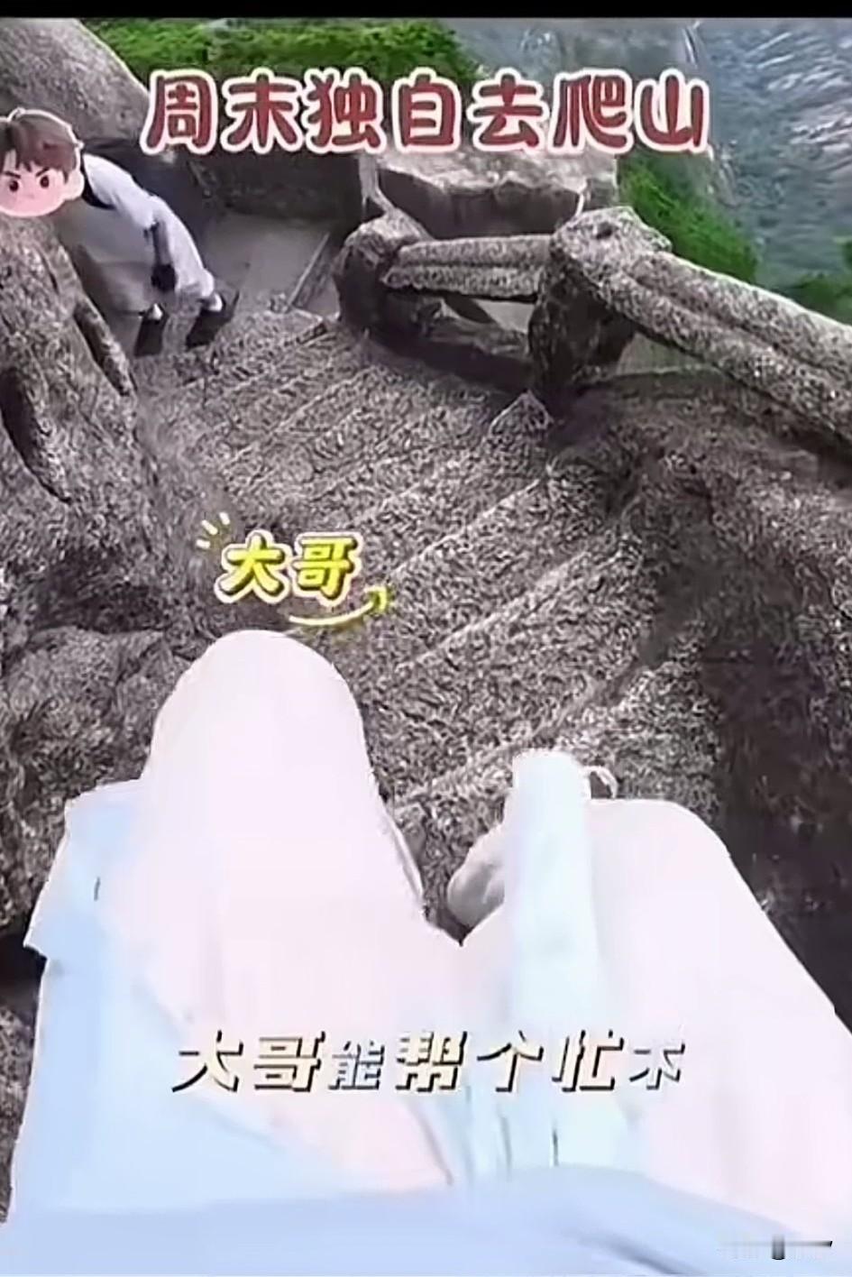 女子周末独自爬山, 爬山的时候一点事也没有, 下山的时候腿有点抖, 呼吸还很急促, 看着旋转的山阶, 呼吸有点慌了, 看到拐角有两位男士正上山, 就问对面的小哥哥会人工呼吸吗? 小哥哥也是直接表示不会, 自己又不是医生护士, 女子表示我可以教你, 两个男子直接拒绝, 女子表示自己需要人工呼吸, 两位小哥哥还是拒绝了, 本以为两位小哥哥还是正人君子, 根本不屑占女子便宜, 结果小哥哥说了句, 还想吸我的阳气想得美, 一下就把人逗笑了, 大家对于两位小哥哥拒绝给女子坐人工呼吸怎么看? 爬山 爬山美景 爬山美照分享 女生登山 爬山女人