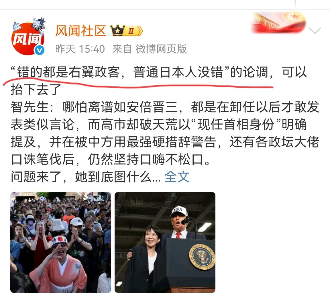 “日本人民是无辜的”这种论调可以结束了, 此次早苗挑衅事件,最大的收获就是让人看清了挑衅我国是这个民族的共同决定。 以后网络上再有,错的是右翼政客日本普通人是无辜的论调,就拿这次事件打它的脸。 因为83%的民调支持率,就是最好的证明。 我们的善良,还是多留给自己人。
