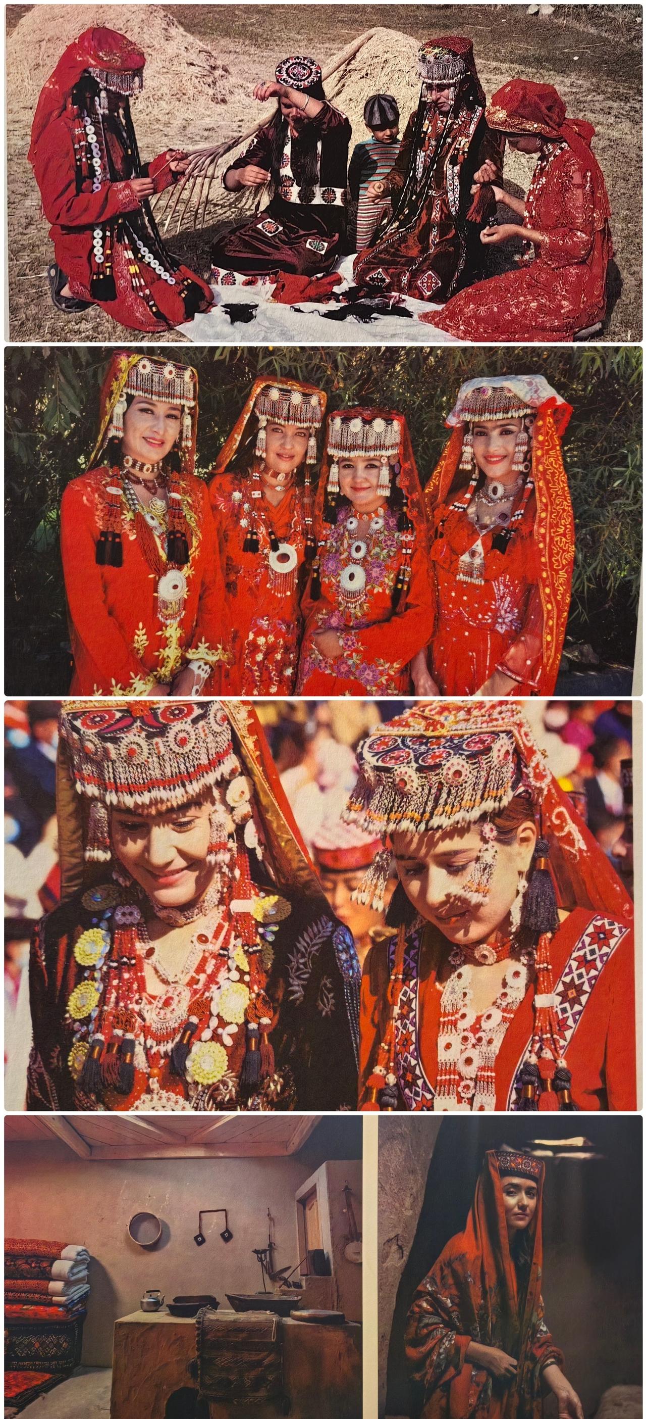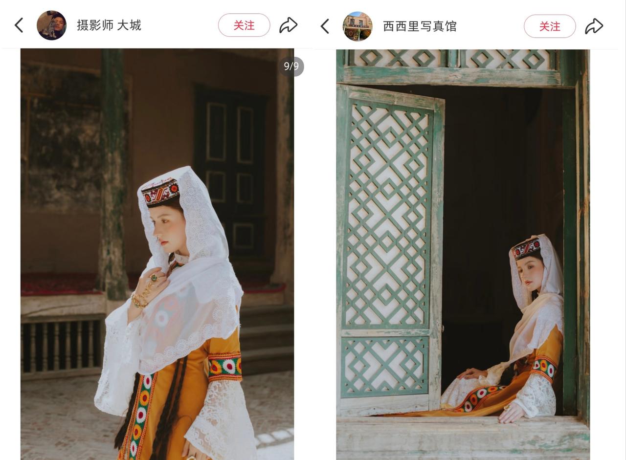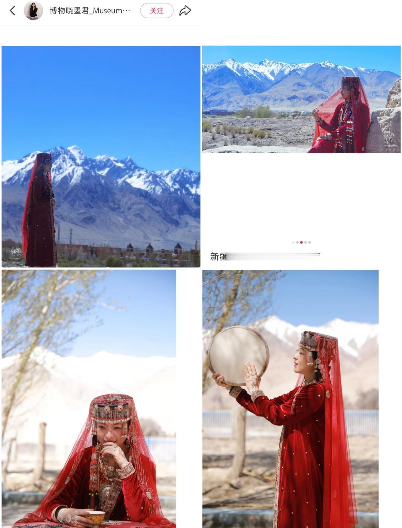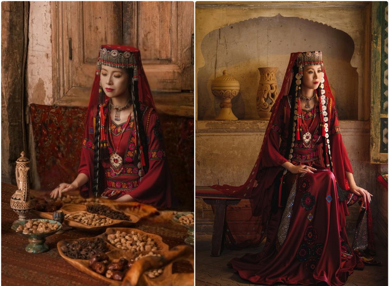 (起因是在喀什拍了个塔吉克族服饰旅拍,有些满意与不满意的点,回来找了些资料写个分析玩玩,图片出自网上,都标注了出处,如有冒犯,请告知侵删) 🌈民族介绍: 1,服装:我国高原塔吉克族,旅拍服饰一般有两种类型,很隆重的红色新娘服饰/轻便日常服装头帽。(也有部分旅拍提供乌兹别克斯坦或阿富汗收藏来的平原塔吉克族服饰,本文未归纳进)图2/3/4 塔族婚服全套里外多层,另加头饰和项链戒指手帕。因为不希望出现民族服饰混搭乱搭的笑话,所以特地选了价格偏贵的旅拍,满意的是该组服装,之后去塔县博物馆看过塔吉克民族介绍,确实正宗全套无误 2,环境风格:我国塔族居住在塔什库尔干县高原上,建筑多用石块或土坯砌筑,夏季牧场用临时土屋或毡房。近年来 屋内装饰,尤其是婚房软装比较多采用金/红/白/黄色靠垫缎被挂毯装饰。居所所在自然风光有草原/雪山/河流,冬季覆盖白雪。图5/6/3下图 💔所以,当得知旅拍场所选择在巴依老爷房子里时,本人非常不愉快。巴依老爷家是蓝绿调的维族色彩,且建筑风格精致豪华,既不符合塔族朴实自然的气质,塔族服饰在维族家旅拍,也是个违和的民族概念 理解旅拍摄影规划,喀什是维族地区,并没有塔族环境氛围,而巴依老爷家色彩丰富,建筑异族风格明显,常年旅拍经历能总结出什么姿势在什么位置有最好的光影,有限的时间内达到出片效率最高,让双方满意的旅拍作品 ⚡因此,我一开始就错了,应该去塔族聚居地的塔县拍,而不是喀什。但是塔县的自然风光有季节限制,且旅拍机构选择少。鱼和熊掌,难以兼得 ---------------------------------&-------- 🦄拍摄过程: 喀旅的拍摄,设置了摄影工作室人物摄影和外景拍摄两个环节: 1,室内拍摄;参照靳尚谊油画《塔吉克新娘》图7, 婚服富丽繁复,与原画里静谧质朴感不同,但摄影室打的灯光至少也能出来光影效果。只是本人不太理解摄影师的独特爱好,他非要把婚纱拉直,我喜欢和油画一样略微皱褶有曲线弯度,使动作更自然一点。总体来说这种摄影风格,在其他搜索中没有同类拍的更好的,满意 2,外景拍摄;平心而论,除了民族不相符,巴依老爷家是出片的好地方。各种角度位置千锤百炼后,都能迅速达到旅拍美照效果。摄影师非常专业,不愿意拍不符合他审美的位置。比如图8,摄影师认为光线不够效果会糊,他的担忧是正确的,但我觉得满墙陶罐很有趣,平不平面无所谓。 -------------------&------------------------ ❓️🈸📸但此次拍摄最耿耿于怀的,还是什么样的环境背景符合塔吉克族的真实民族调性? 解决方法有二 1,如果在喀什古城内拍摄 [糖果]不考虑民族概念违和的前提下,图9是以人为本的优秀范本。画面70%都由人物占据,背景也选择了贴合塔吉克生活环境的米色土墙/红色挂图/米色陶罐的统一色调,更突出了立体妆容人物本身的英气勃发,符合塔吉克族带来的异域感。没有过多的强调光影,也没有被维族丰富色调干扰画面 结论,在巴依老爷家选择色调单一的背景,可以避免民族风格冲突,如图10(另外需注意塔吉克族常用哪些乐器) ❤🩹另一个相同服饰相似环境范例,图11,应该也会受欢迎,但美则美矣,这种妖娆美更像披着塔吉克族服饰的狐狸,而不是高原上的鹰 🌔选择浅色塔吉克常服,可以降低红色婚服带来的民族仪式感,和巴依老爷家不再违和,也更适合汉人的弱质气质,如图12 🌳选择婚服但换景,高台民居的夯土墙,与塔县居所相同的材质,作为背景更融洽,如图13 2,如果去高原 🔥以高原雪山自然风光为外景,就搜到的照片,很难同时把人与景同时结合。图14,犹如旅行杂志的插图,氛围感很好,在托格伦夏村;图15,杏花季与雪季,对摄影师外拍的要求更高 而作为人物写真,图16,无疑是所有搜到的摄影中最喜欢的南波万。符合风景美/服饰美/人物美,各种审美[爱慕] 最后,自己手机P了一张✌