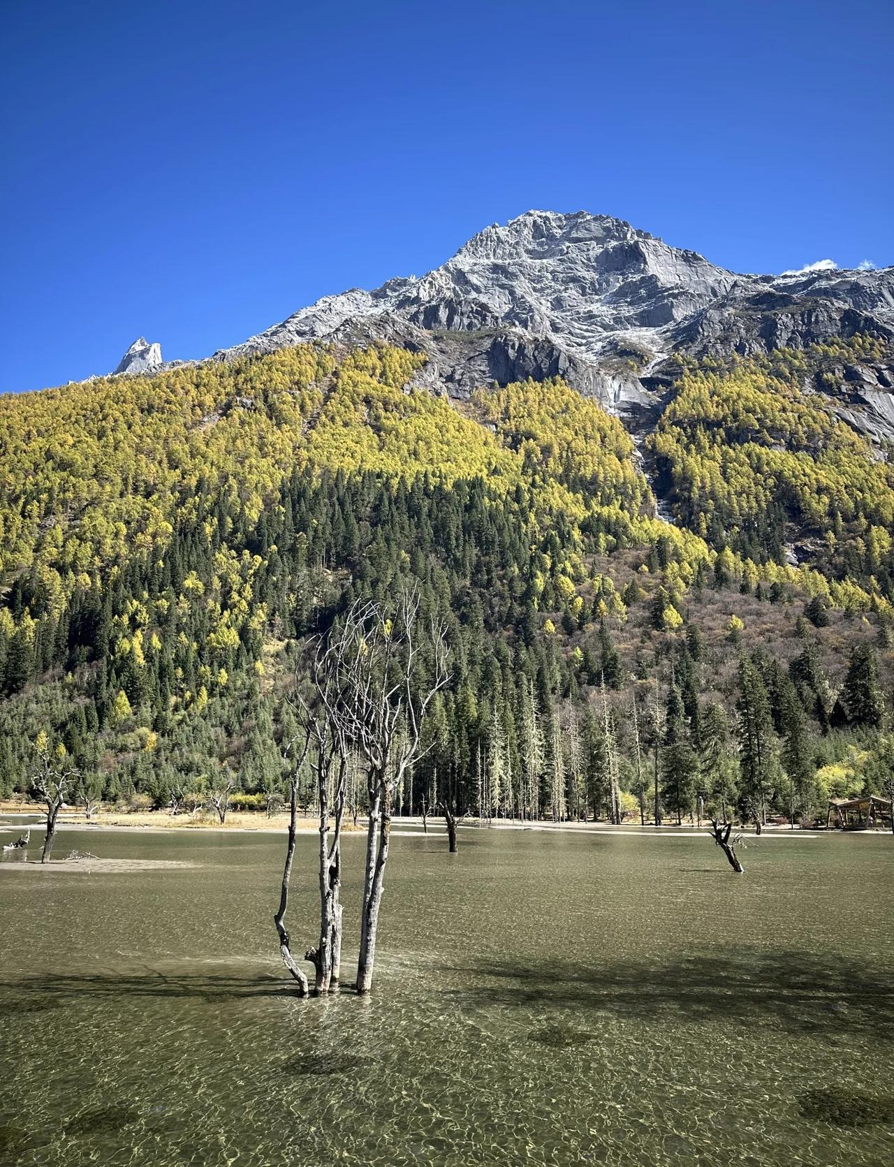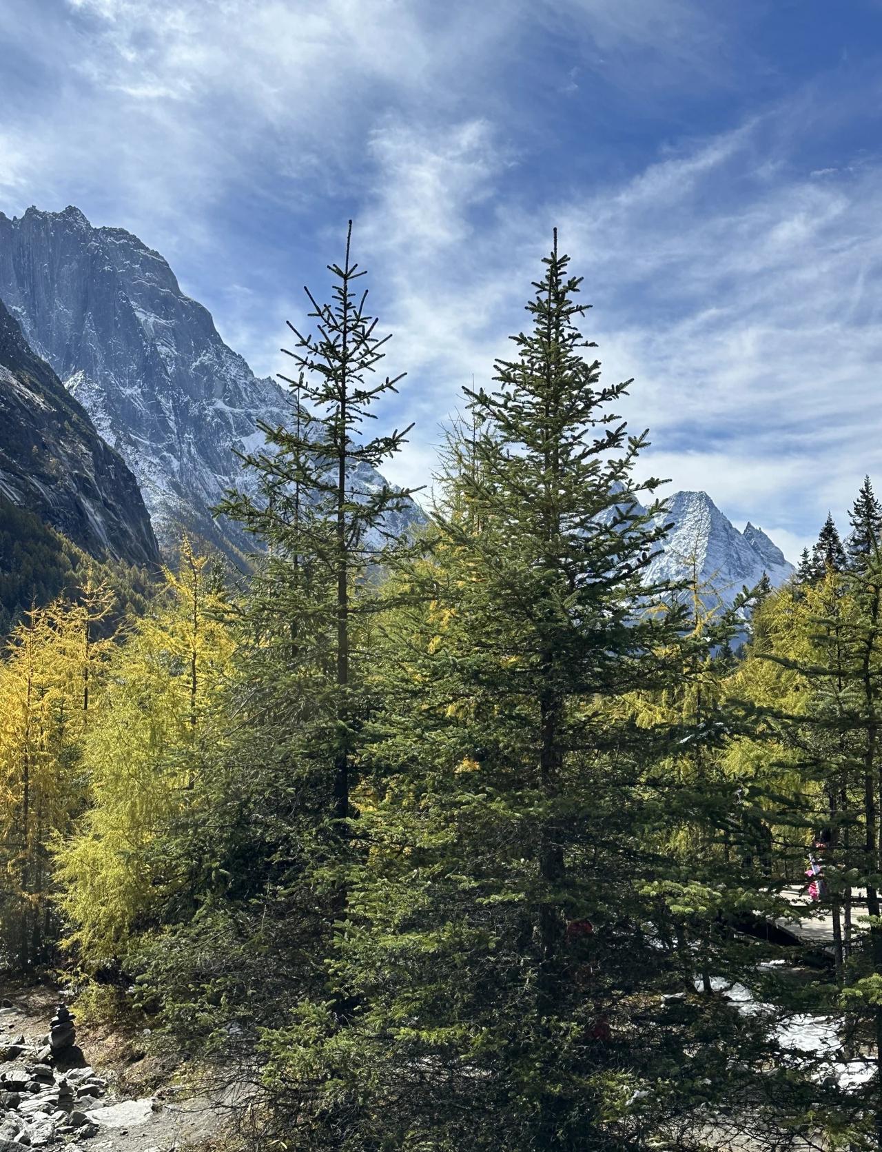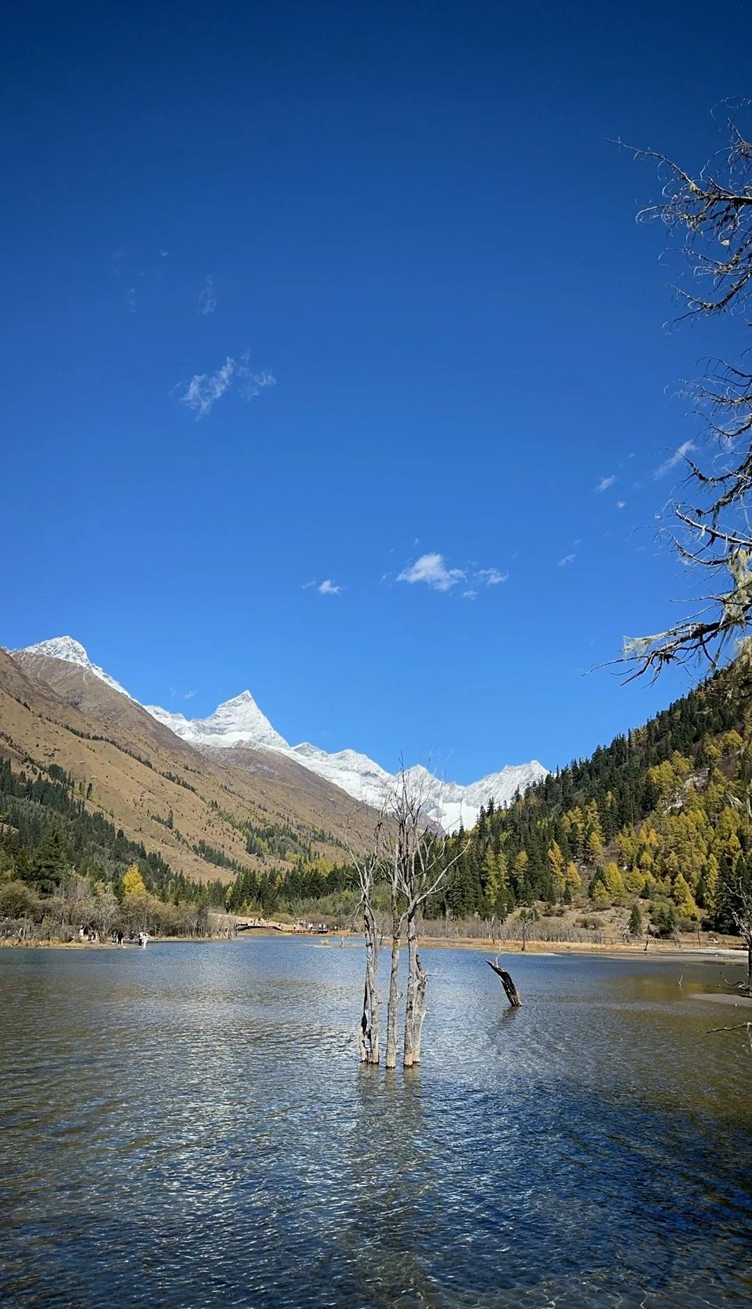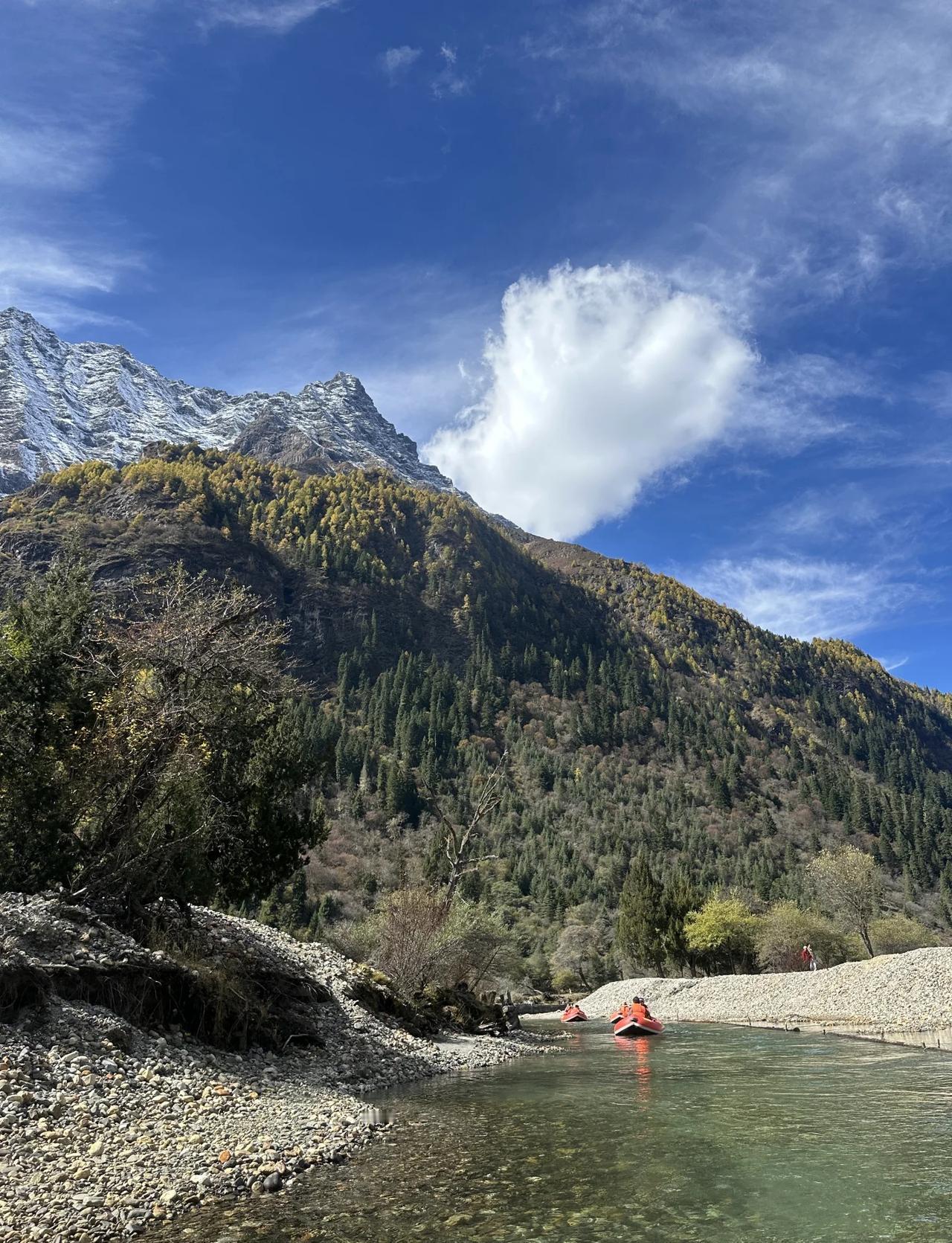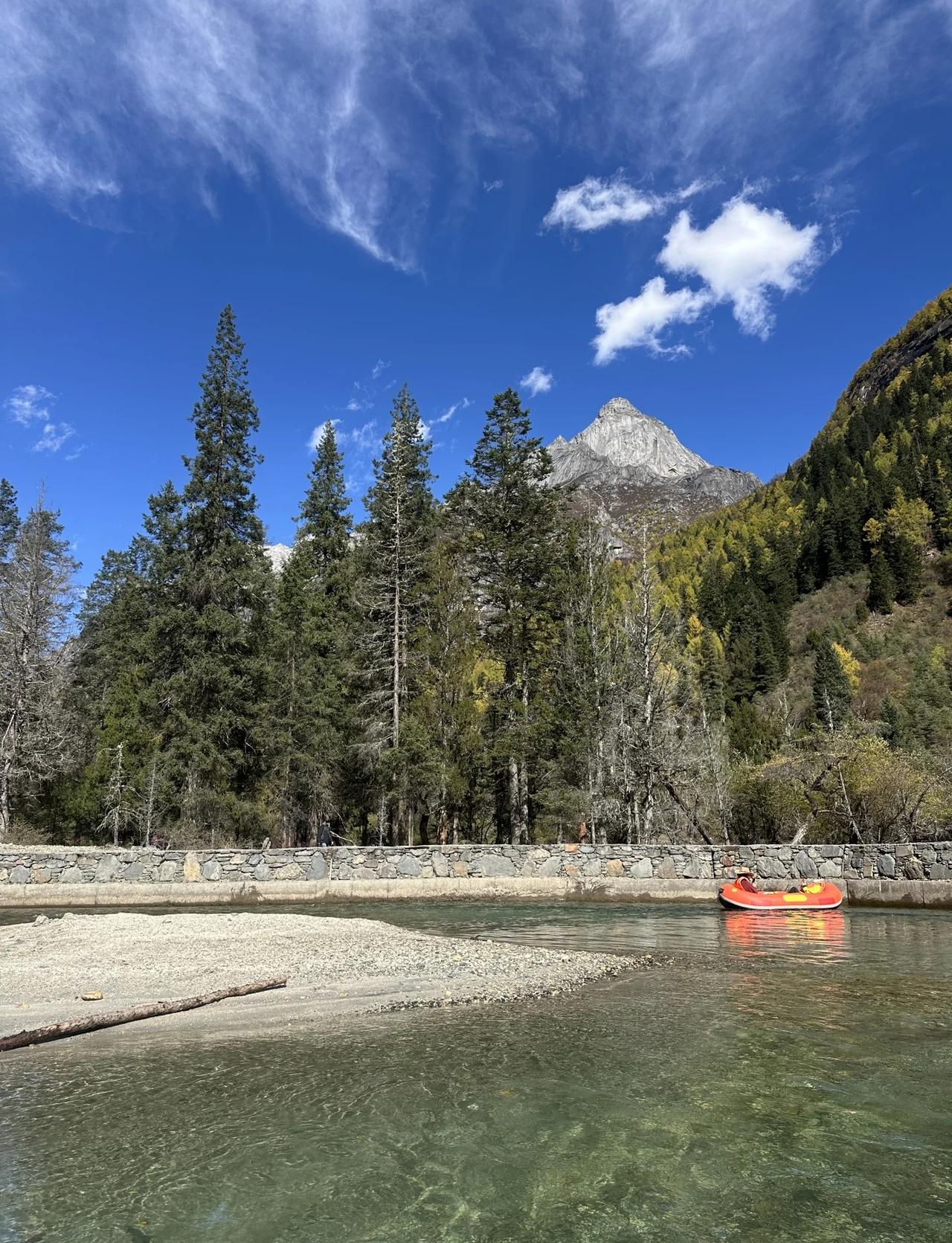 无法描述四姑娘的美 第一次带着家人川西自驾,第一站就是四姑娘山,从成都出发开车4个半小时就能抵达四姑娘山,沿途风景也很美,这次我们选择的是四姑娘山三条沟其中的一条双桥沟,因为带着长辈就只能选择一条相对舒适不那么辛苦的双桥沟,其实到达四姑娘山上还是有点高反的,游客们到达的最高点红杉林海拔3840,我看很多人还是有头痛和缺氧的,还是需要根据自己身体状况,量力而行.感觉那些瓶瓶罐罐的氧气瓶没啥用.双桥沟景区的游览路线都先把游客载到最高点红杉林下车,由上往下一路观光,途经好几个点,游客可以自由上下,现在刚好是彩林季节,又有雪山,还是值得去一趟的.温度也还舒适没那么冷.这次也体验了高海拔雪山的漂流,其实还是挺舒服的,可以体验一下. 向雪山走去 遇见雪山的浪漫 我被雪山治愈 雪山下的秋天 被雪山治愈的瞬间 山川美景尽收在眼底 听说雪山可以治愈一切 远处的雪山