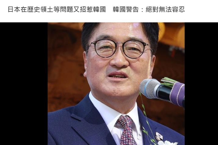 韩国国会议长禹元植对日方近期在韩日历史、领土等问题上的言行表示担忧,要求日本展现真诚反省和负责任态度。 禹元植在社交媒体上发文说,日方近期加速推进修宪将把日本转变成“能够发动战争的国家”,这令人担忧。 这是动摇东亚和平秩序根基的行为,无论韩国还是其他周边国家都绝对无法容忍。 绝不能忘记,如果没有真诚解决历史问题的努力,一切合作都只会是“空中楼阁”。 禹元植还说,继日本首相高市早苗近期公开发言宣称独岛(日本称“竹岛”)在历史上、国际法上都是日本领土之后,日本政府日前又追加开放了主张独岛等主权的“领土主权展览馆”扩建空间,“这企图向学生等下一代人植入错误认知,我对此表示强烈遗憾,并敦促日方立即将其关闭”。