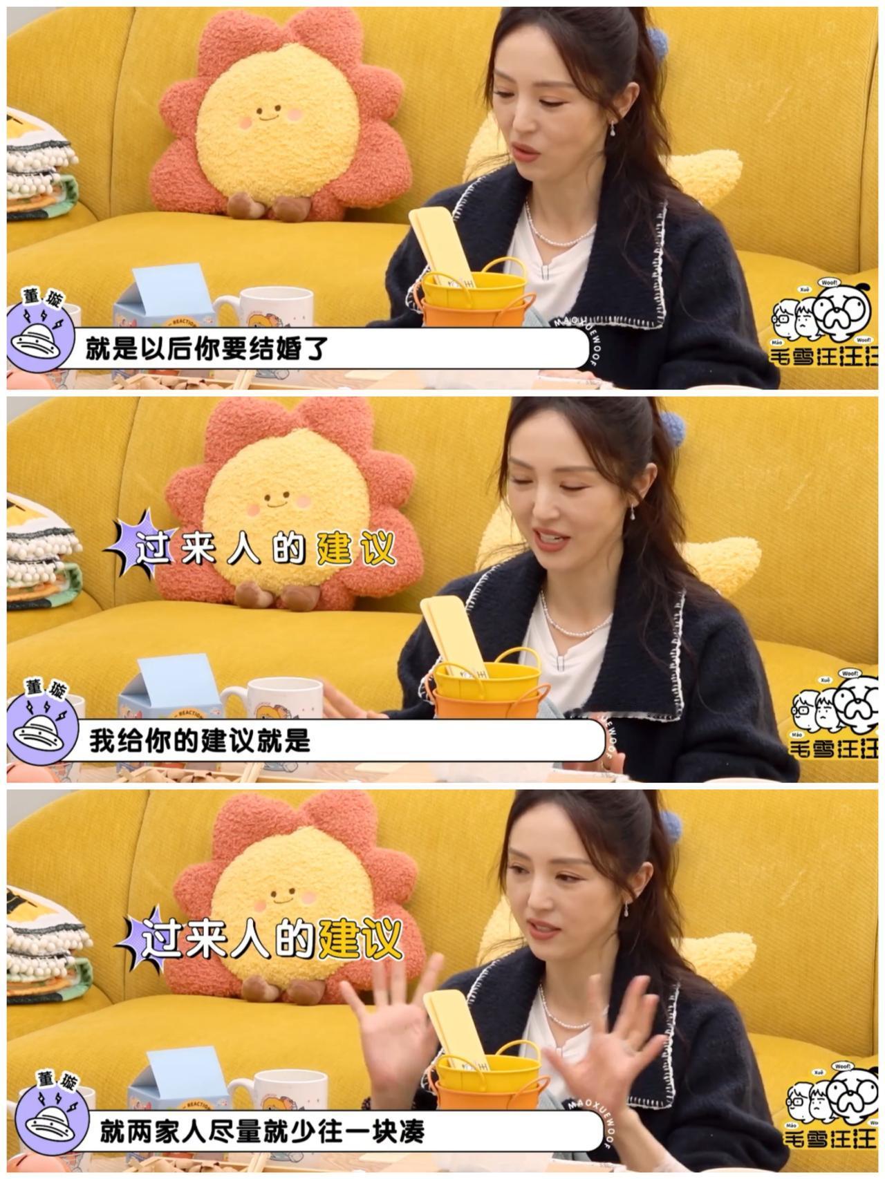 董璇告诉李雪琴 婚后双方家长一起过年 公公婆婆和爸爸妈妈“打起来”了。 董璇二