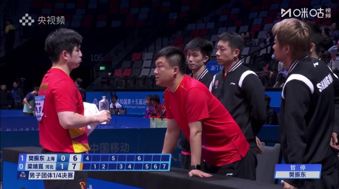 全运会乒乓球男团四强:上海、北京、广东、黑龙江。18:00 半决赛! 全运会乒乓球男团1/4决赛已经结束了。 上半区 北京队3:0辽宁队 广东队3:0天津队 半决赛 北京队Vs广东队 下半区 上海队3:0河北队 黑龙江队3:1浙江队 半决赛 上海队Vs黑龙江队 半决赛 11月18日 18:00开始