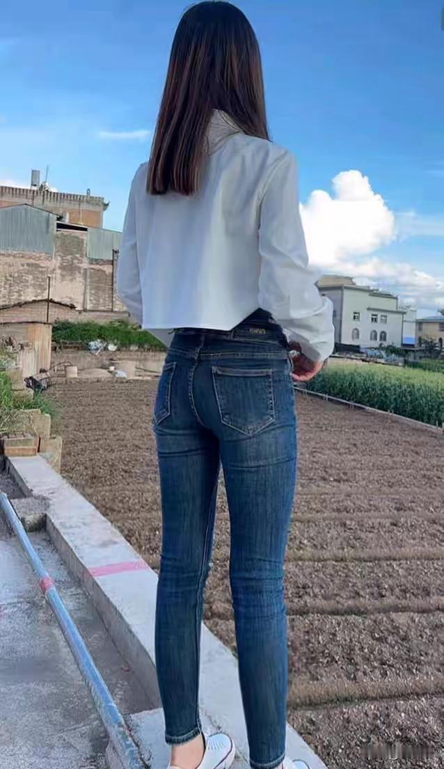 背对镜头,白衬衫+牛仔裤,简约又时尚,都市女孩的日常穿搭。