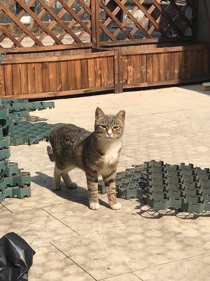 这猫每天都有公司的员工来喂它,给它铲屎,员工一走这猫就去和别人要吃的!