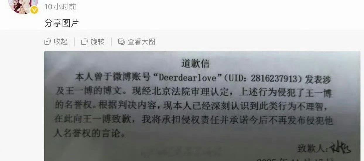 侮辱诽谤王一博网友致歉,支持王一博维权