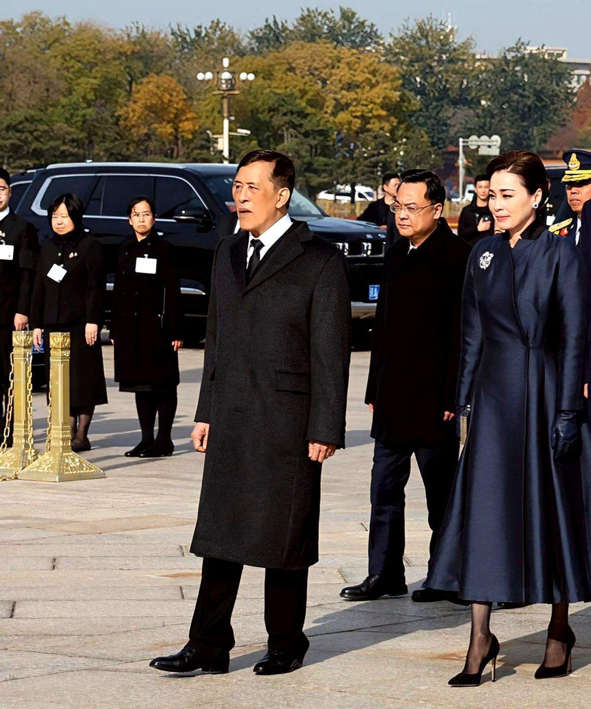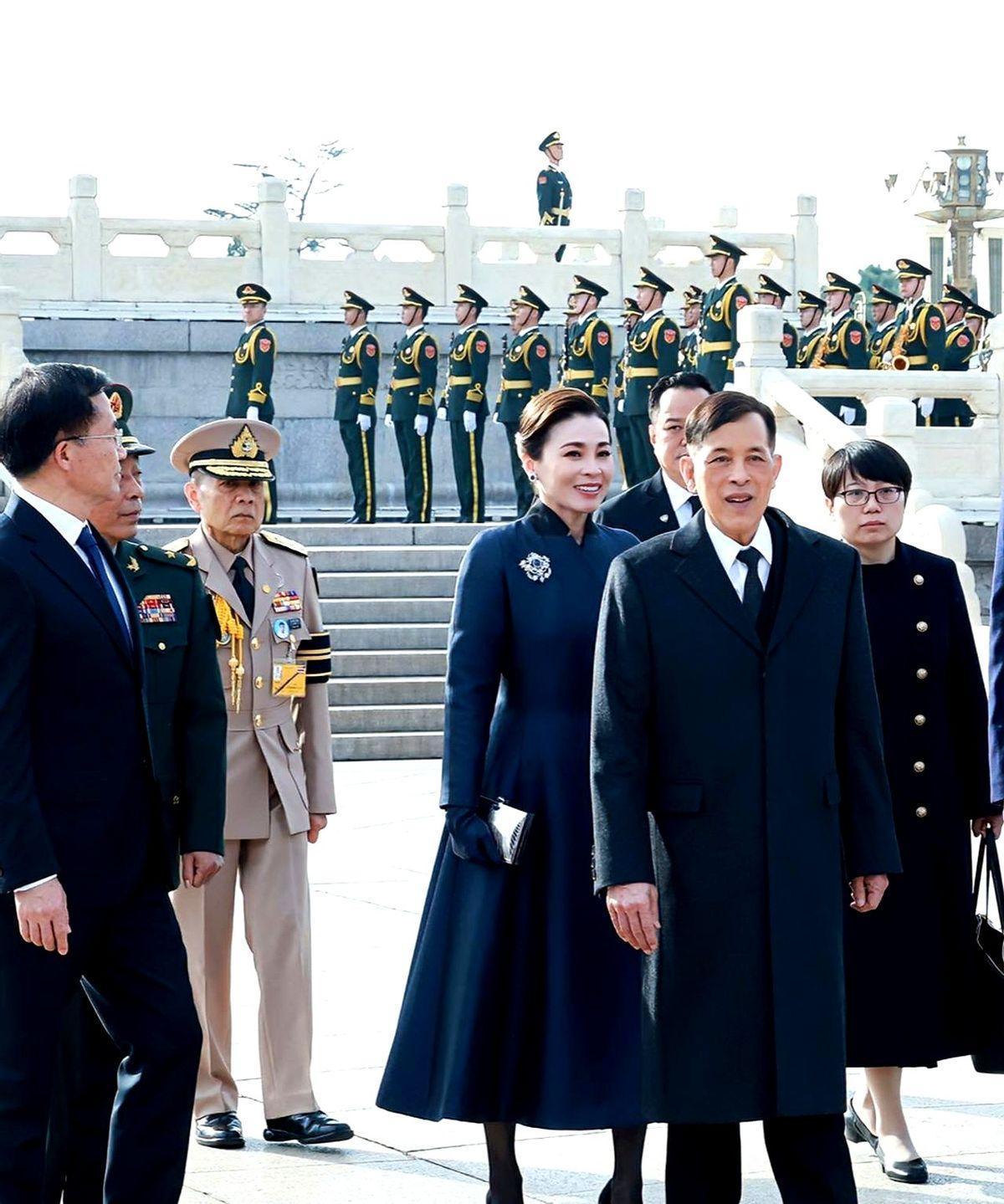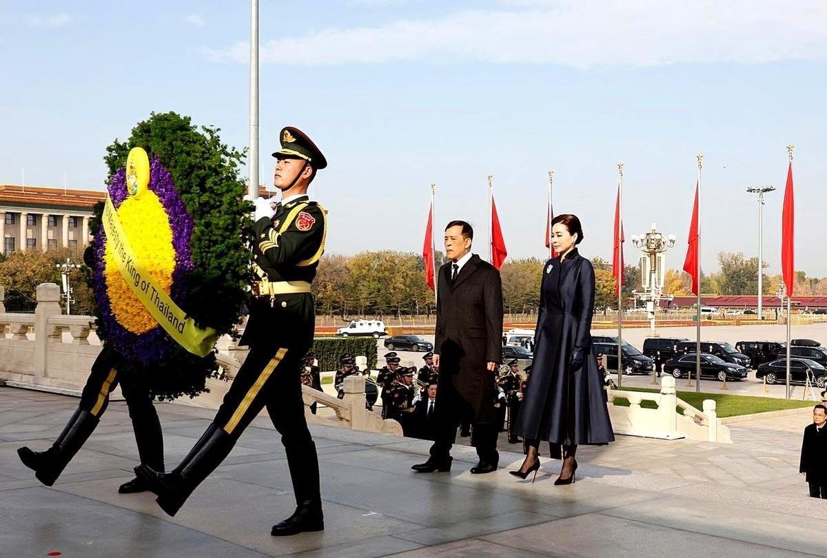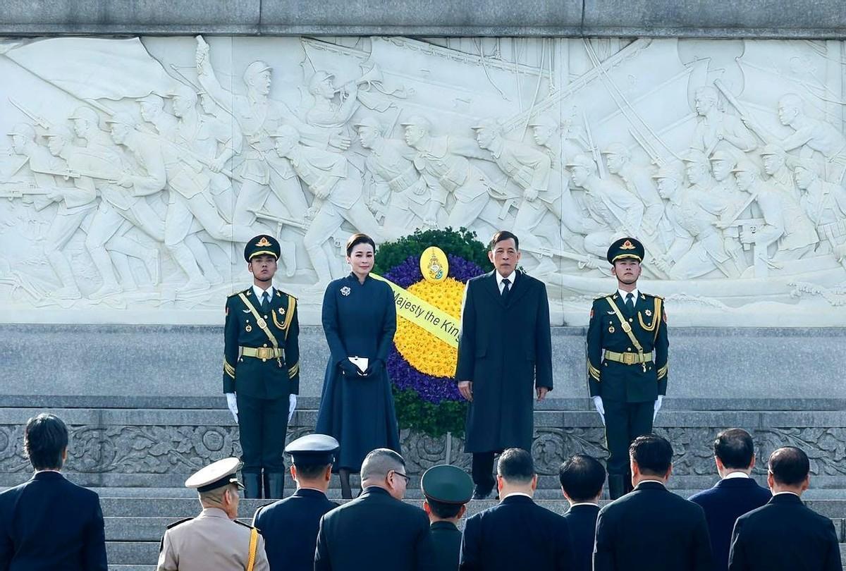就在刚刚。 据媒体发布的行程,泰国国王玛哈·哇集拉隆功与王后苏提达突然宣布了在北京的一项安排:向天安门广场人民英雄纪念碑献花圈。 画面很直白:两位贵宾在纪念碑前肃立,礼兵托举花圈,现场安静。 纪念碑这座建筑不普通,高约37.94米,1952年开建、1958年落成,正面八个字“人民英雄永垂不朽”,位置在广场中轴线上。 放到各国的纪念做法去看,这一步更有分量。莫斯科克里姆林宫旁无名烈士墓自1967年起长明火常亮,华盛顿阿灵顿国家公墓的无名烈士墓全天守卫。礼节就是态度。 对回到现场的程序细节,献花圈通常配仪仗队列队、奏乐、脱帽致意,动作严格,时间控制到分钟,这是一套成熟流程。 看泰国国内,曼谷胜利纪念碑建于1941年,纪记的是法暹战争伤亡者,如今依然是市民熟悉的地标。他们懂纪念的意义。 这样放在一起,就能读懂这次致敬传递的信号:用公共仪式认同彼此的历史记忆,比任何场面话更实在。 对军人群体来说,这类场合不只是礼仪,更是精神补给。2019年国庆阅兵时,方队走过中轴线,纪念碑就在视线尽头,空间布局就是在提醒来路。 再看来访传统,很多重要外宾在到访时会安排致敬环节,各国都把这种程序当成必备环节,用行动表达尊重,这已经是通行做法。 今天这张照片的分量,还在于“君主亲自到场”。身份越高,越说明重视,这会进入公众记忆,也更能被军人群体读到。 话说回来,尊重英雄、尊重牺牲,是跨越语言的共识。把这件事做在公开场所、做得标准到位,效果就清晰。 这不是热闹,是实打实的传递。懂得别人的付出,别人才会把你当自己人。 记住这一幕:纪念碑巍然,花圈稳稳,礼兵站直,来宾致意。 把话收在一句:敬重历史的人,走到哪都不会走偏。