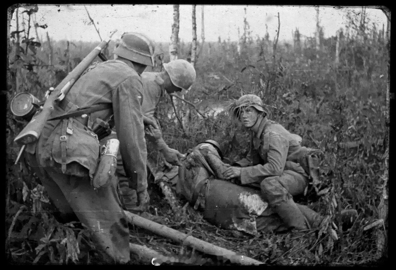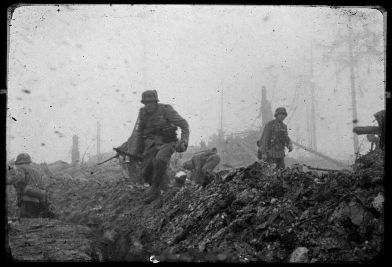 德军战地摄影师于 1943 年 9 月 15 日在拉多加湖附近的姆加村拍摄的战斗实况照片。